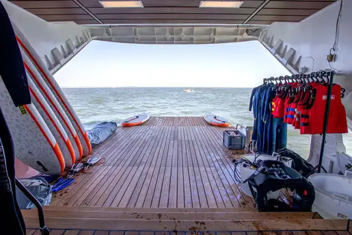 Whether you and your guests prefer diving in the controlled environment of the on board dive pool, taking to the water on SUPs or kayaks, or tackling the challenges of the inflatable aquapark, there is something for everyone on this truly unique sailing ship.