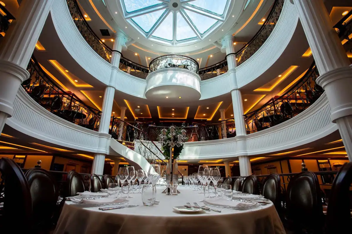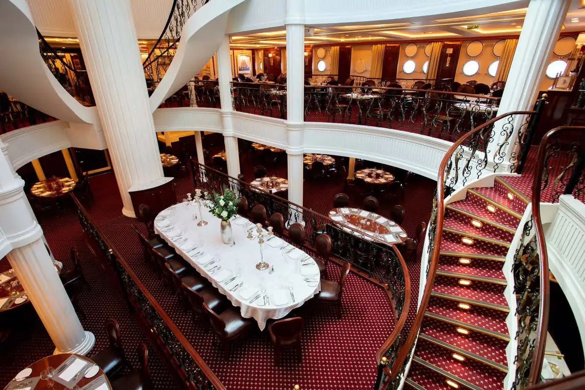 - Library, restaurant and bars on board