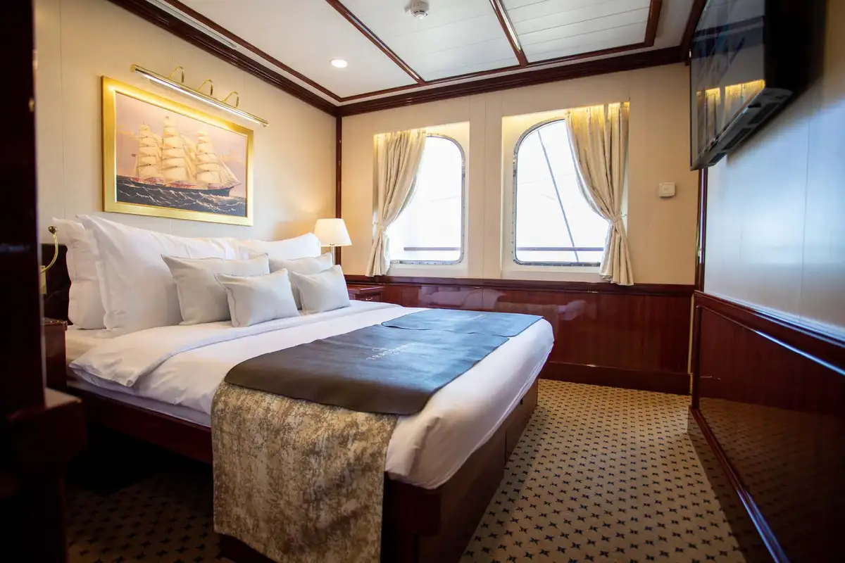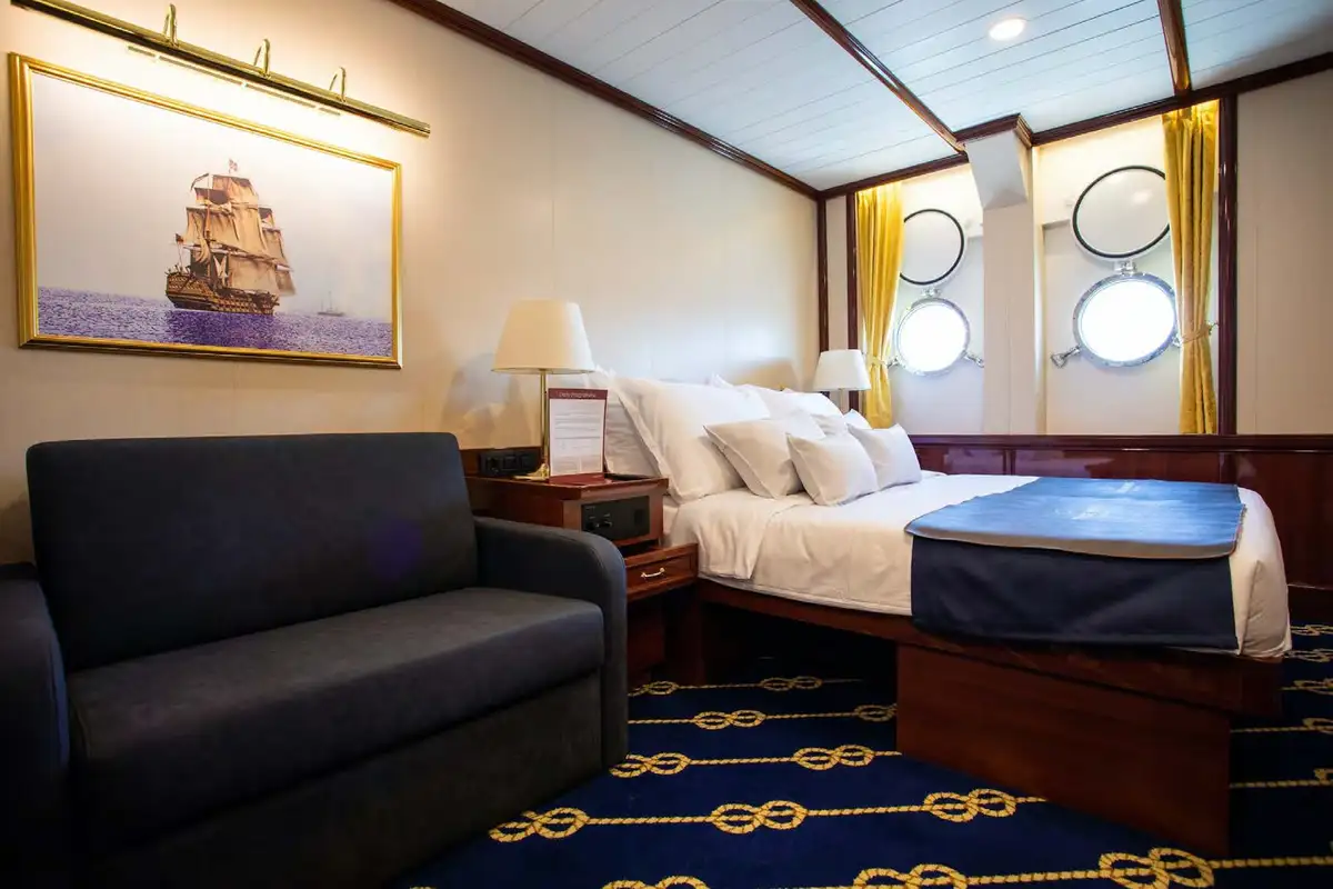 With over 140 classically styled suites (all en suite with sea views) and the capacity to host 274 guests across 25 double suites, 32 twin suites, six single cabins, and 77 double/twin convertible suites, GOLDEN HORIZON can be your personal cruise ship for a special occasion – be it a wedding, conference, or gathering with friends, relatives, or colleagues.
