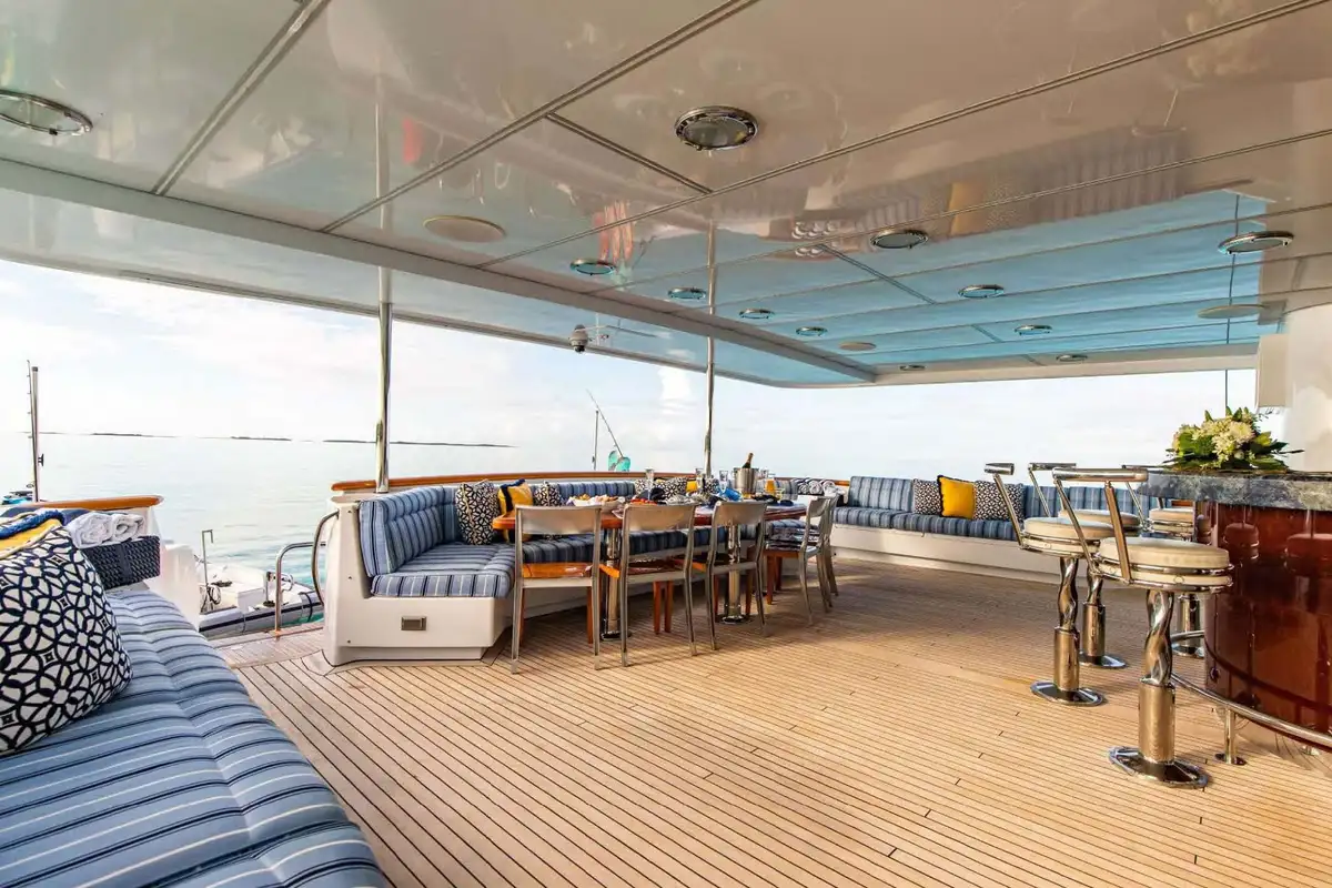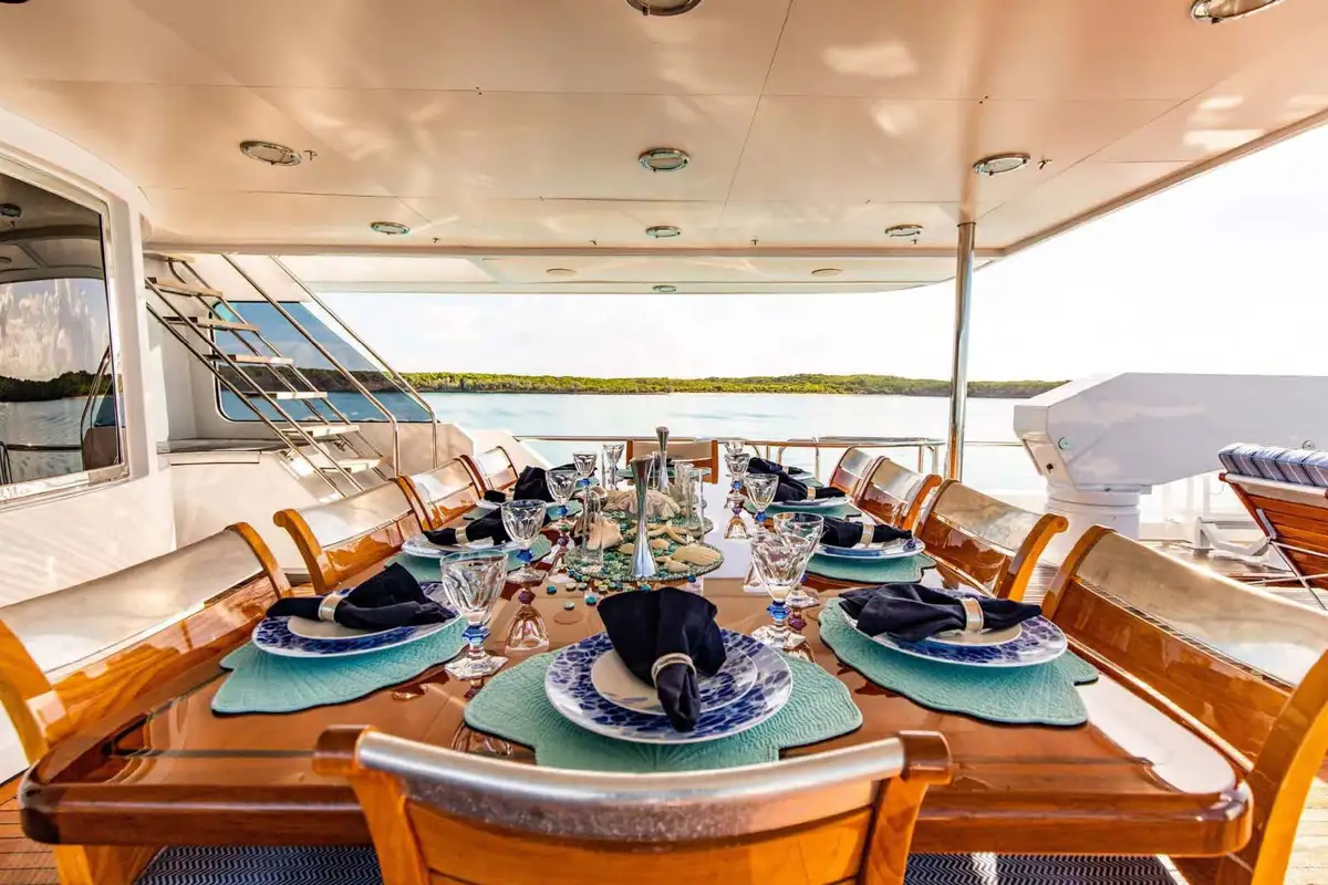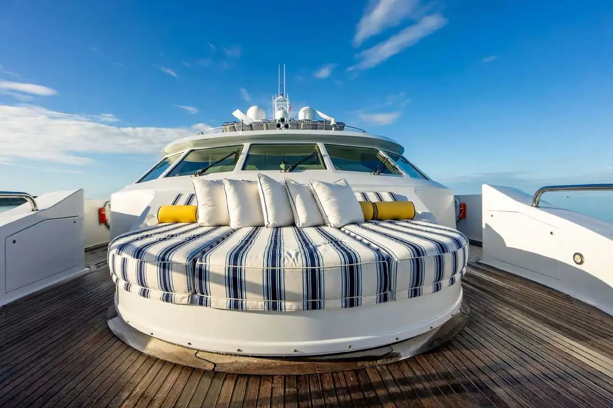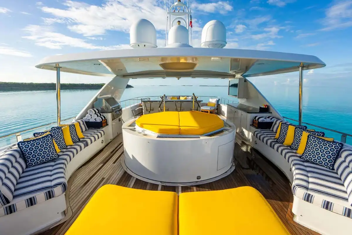 This American-built yacht has an extended sundeck and a jacuzzi for fresh-water frolics and refreshments from a fully equipped wet bar – and plenty of space to work on your tan in the sun or laze in the shade with a book. For those looking to tan in peace, head for the sunpad forward on the bridge deck, a great place to enjoy a cooling breeze underway.