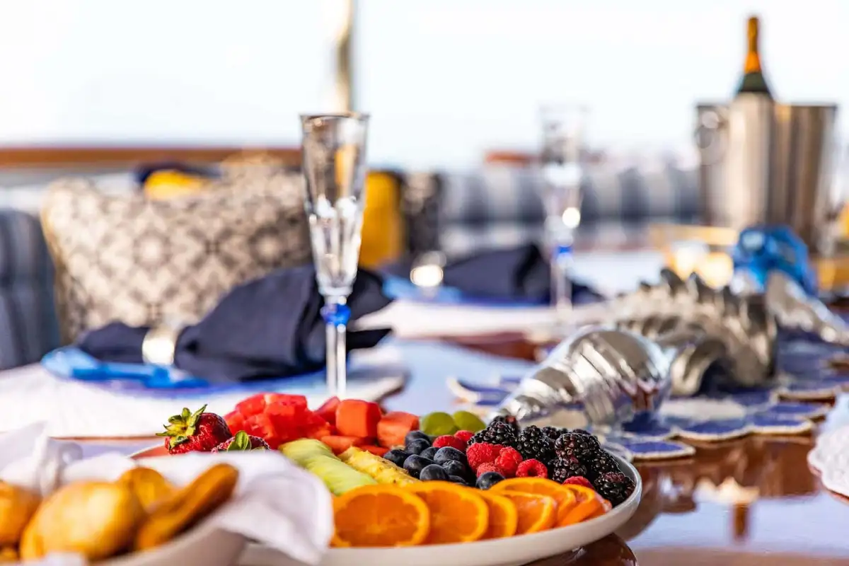For the all-important water-based fun, GRADE 1 has a huge sea-terrace swim platform, so you can enjoy all the toys without crowding each other. It’s a great place to enjoy sea-level dining, too. After lunch on the main deck aft, shaded from the midday heat, what better than dining under the stars at night surrounded by the sights and sounds of the ocean?