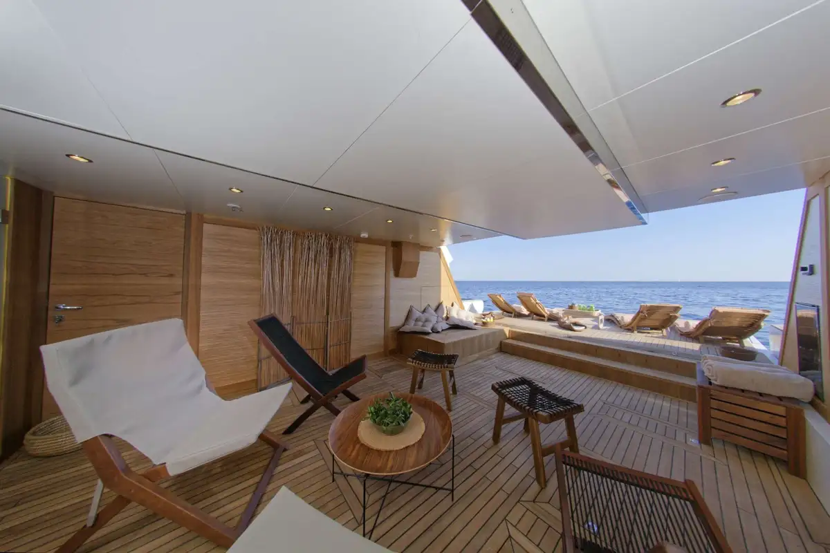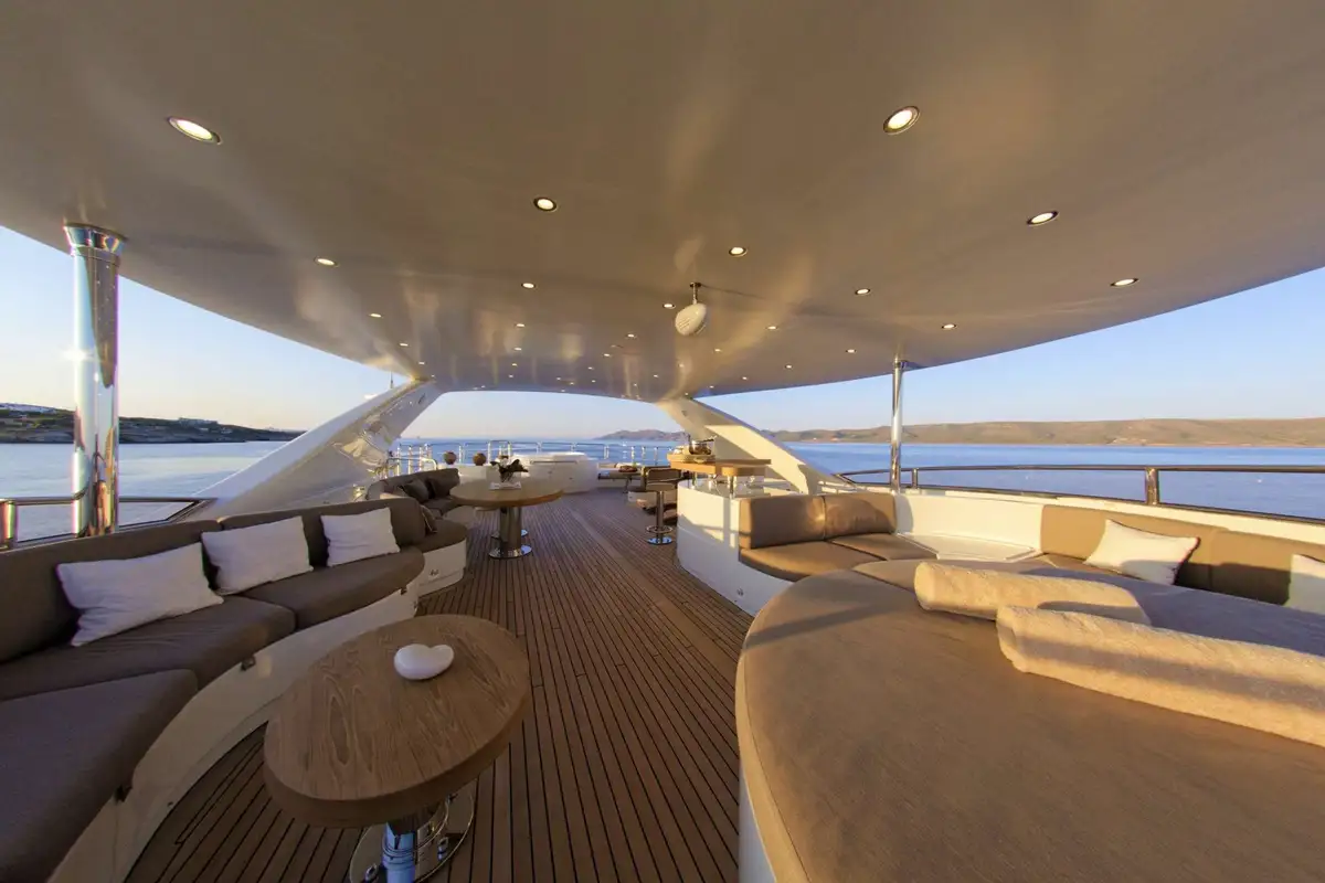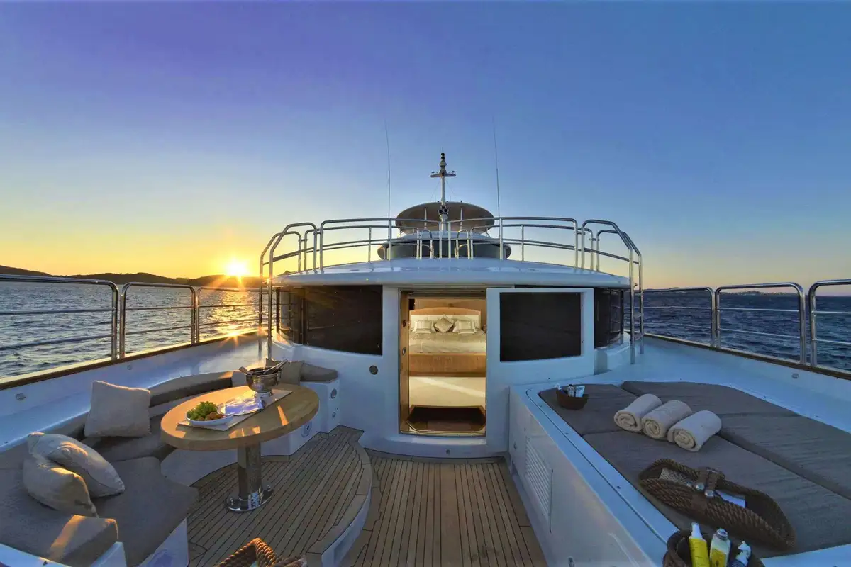 Explore the Eastern Mediterranean in grand style aboard a 44-metre (145ft) modern-classic Benetti yacht with some very special features. Designed for 12-14 guests in six cabins including two spectacular master suites located on the main and upper decks, GRANDE AMORE is an ideal yacht for two families sharing a charter or one extended family. Comprehensively upgraded ofter a major refit in 2020, she has a huge interior with fresh contemporary design by the renowned Zuretti studio and the latest high-end A/V equipment, including a Crestron system. And rest assured, she won’t roll at anchor or at sea, thanks to powerful stabilisers that ensure a smooth, comfortable motion.