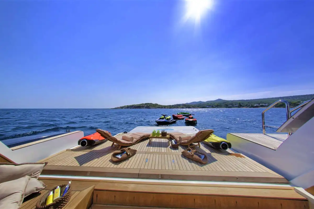 Comprehensively upgraded ofter a major refit in 2020, she has a huge interior with fresh contemporary design by the renowned Zuretti studio and the latest high-end A/V equipment, including a Crestron system. And rest assured, she won’t roll at anchor or at sea, thanks to powerful stabilisers that ensure a smooth, comfortable motion.