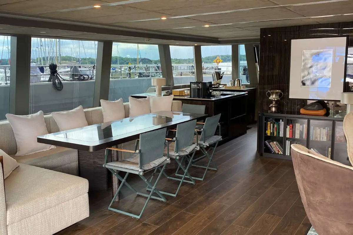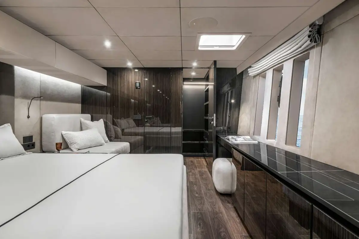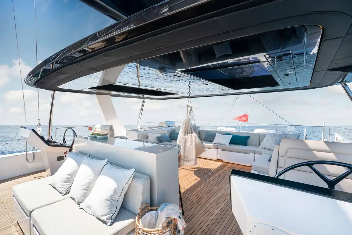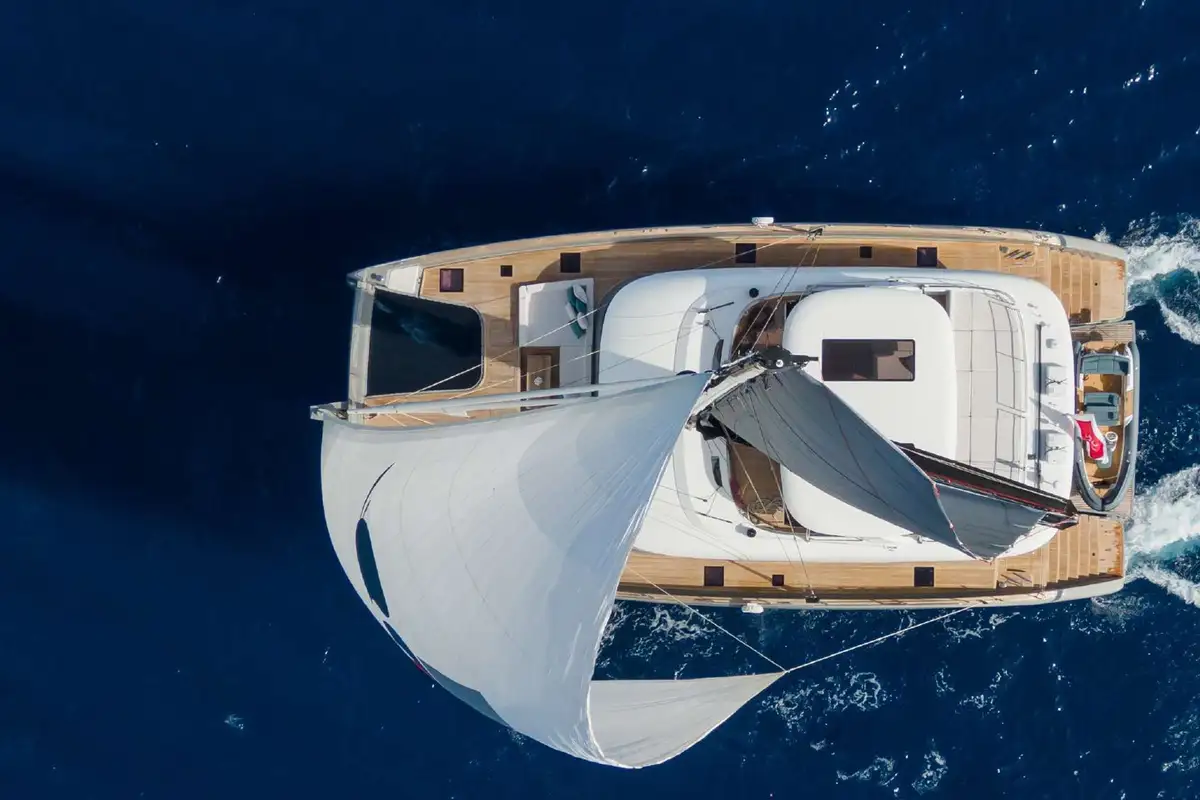 The brand new 2022 Sunreef 80 S/Y GREYB is now available to charter. Featuring an all new superstructure from Sunreef, her sleek and elegant design bring together a classic sailing experience, with all the luxuries you would expect on a new yacht. Upon entering the yacht, you are greeted with the newly designed open saloon and dining concept. Here you have comfortable lounging options on the starboard side and to port there is a dining table and L-shaped sofa combination for more formal seating.