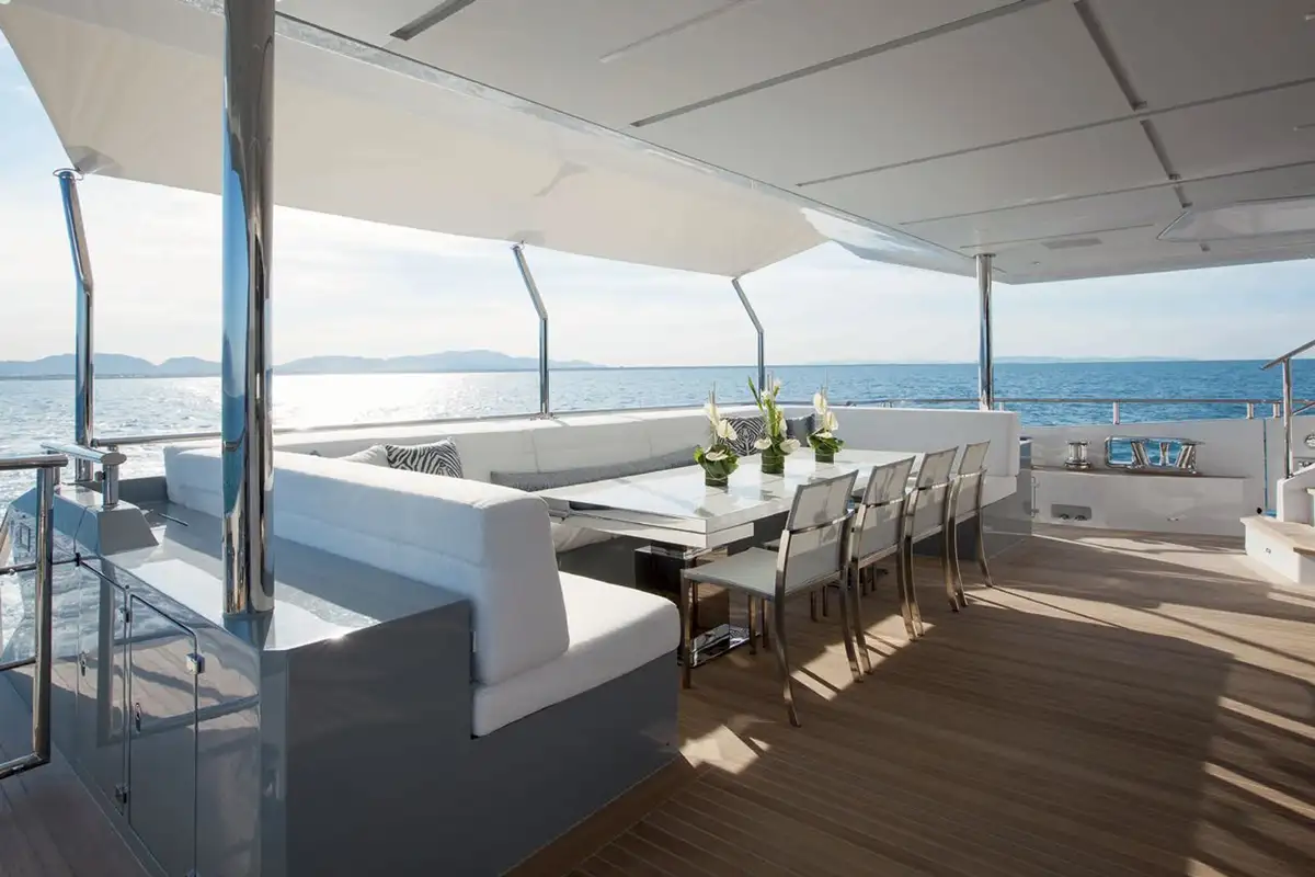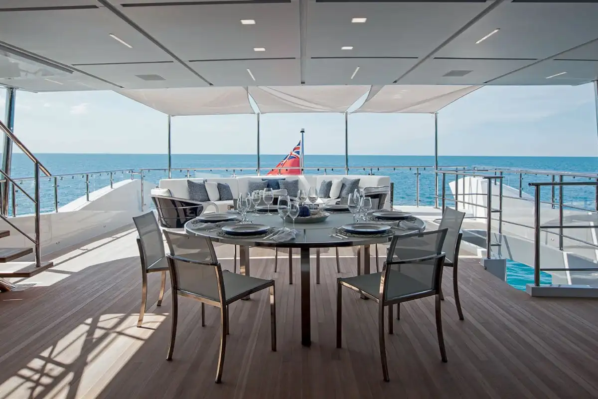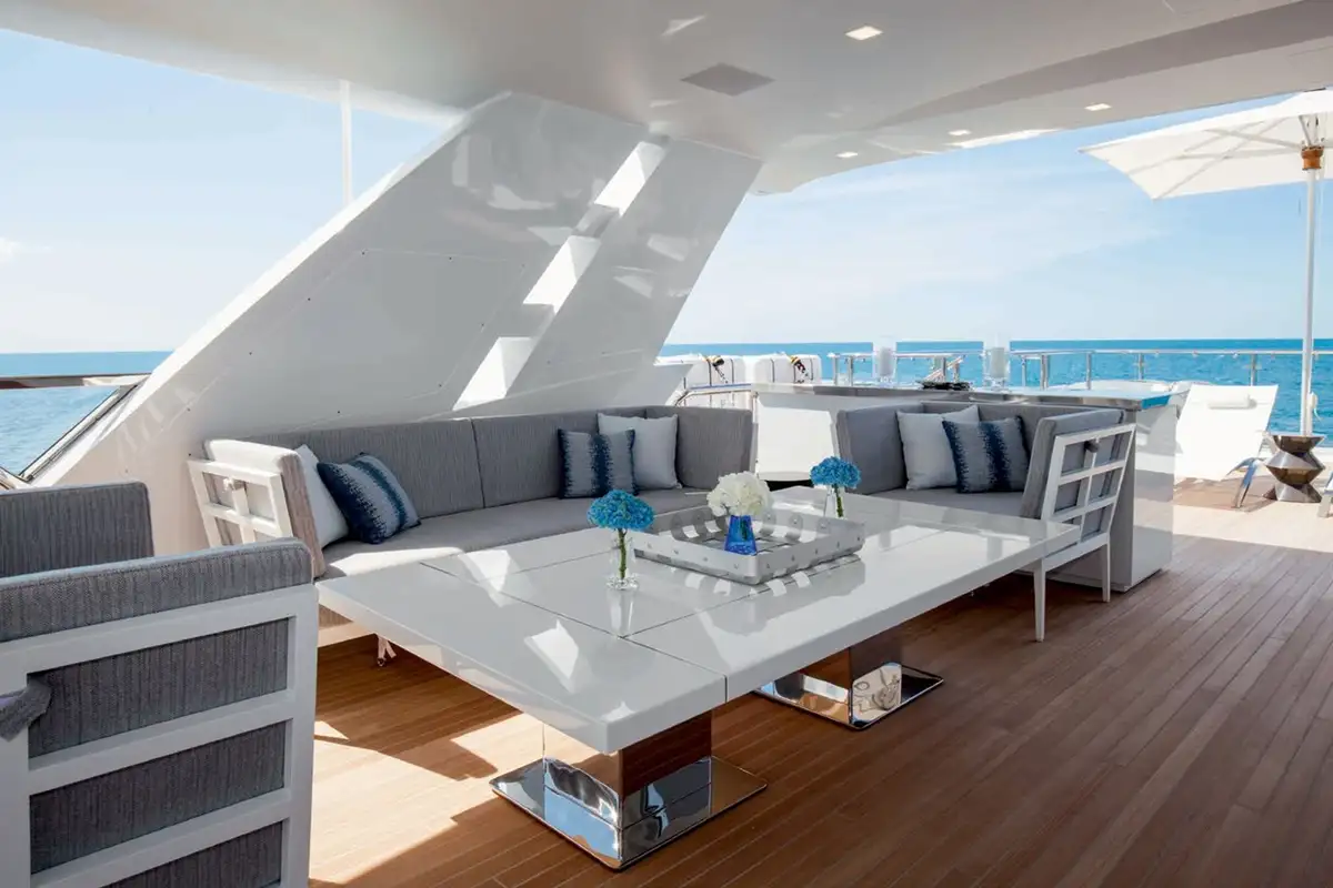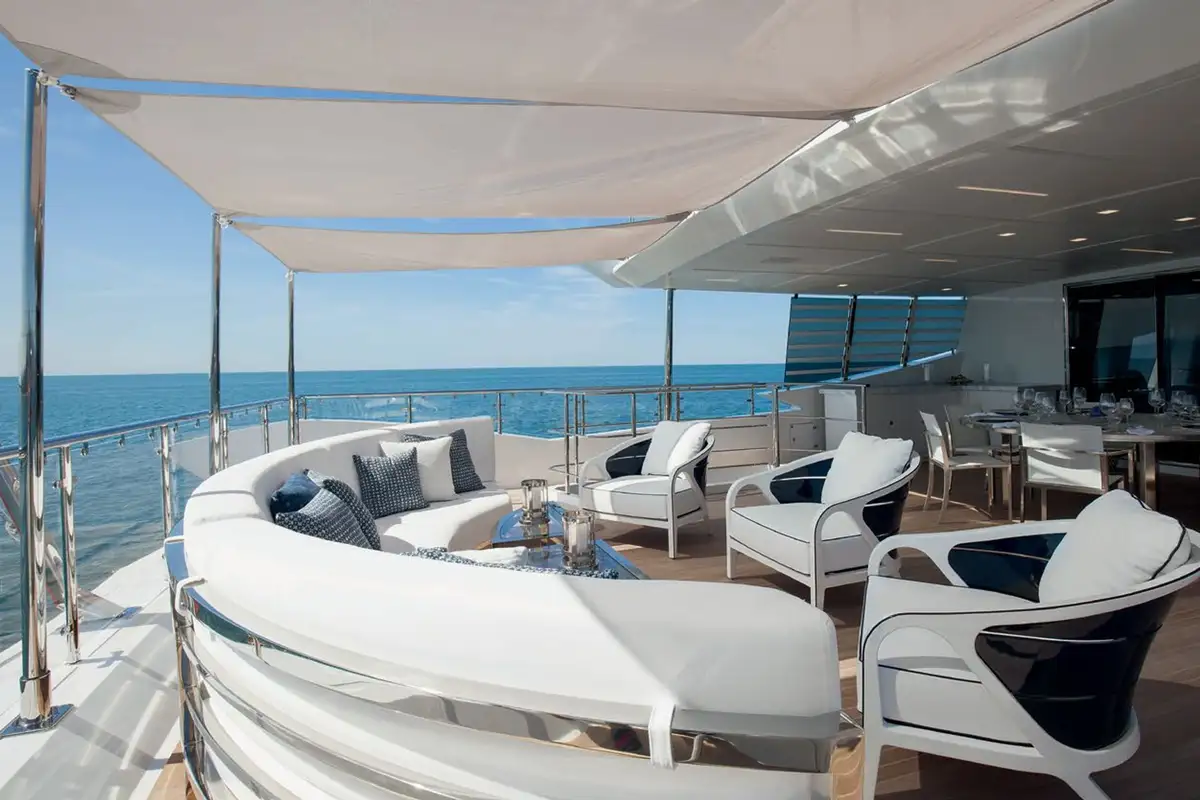 Guests can rest assured that they will receive a dedicated first-class service from H’s powerhouse crew under the careful command of Captain Phil Frost. A beautiful yacht with multiple relaxation areas.