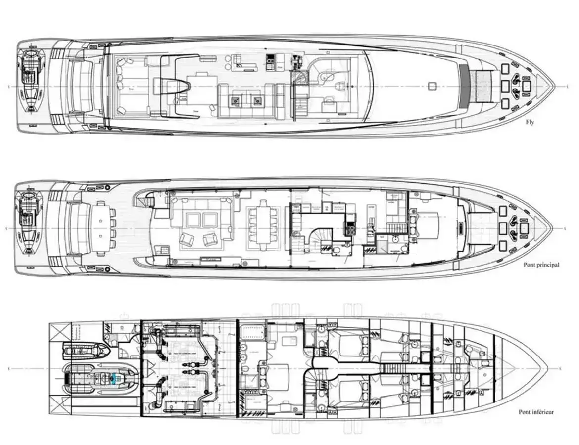 She is well equipped for a wide range of watersports. The main guest tender is a powerful 5.4m (17.7ft) RIB and her fleet of small craft includes four SeaBobs two E-foil boards, a jetski and two paddleboards.