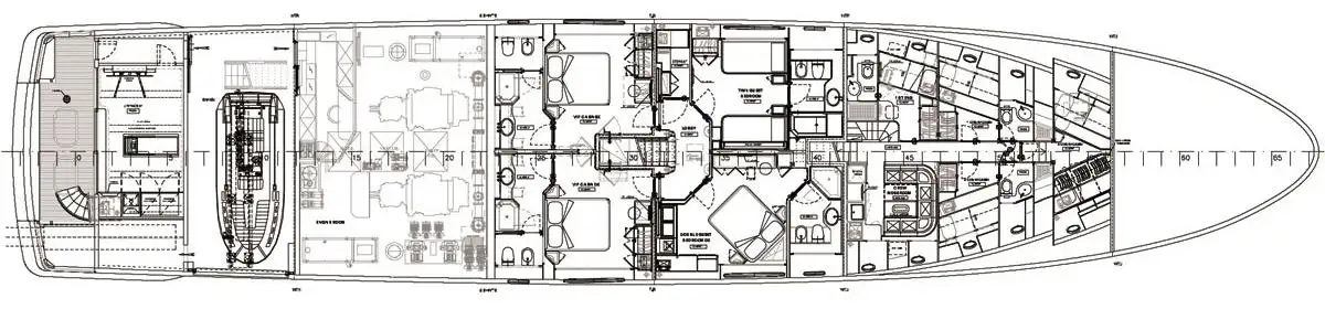 | Types de cabines | 5 (4 × double, 1 × twin, 1 × lit supplémentaire) |