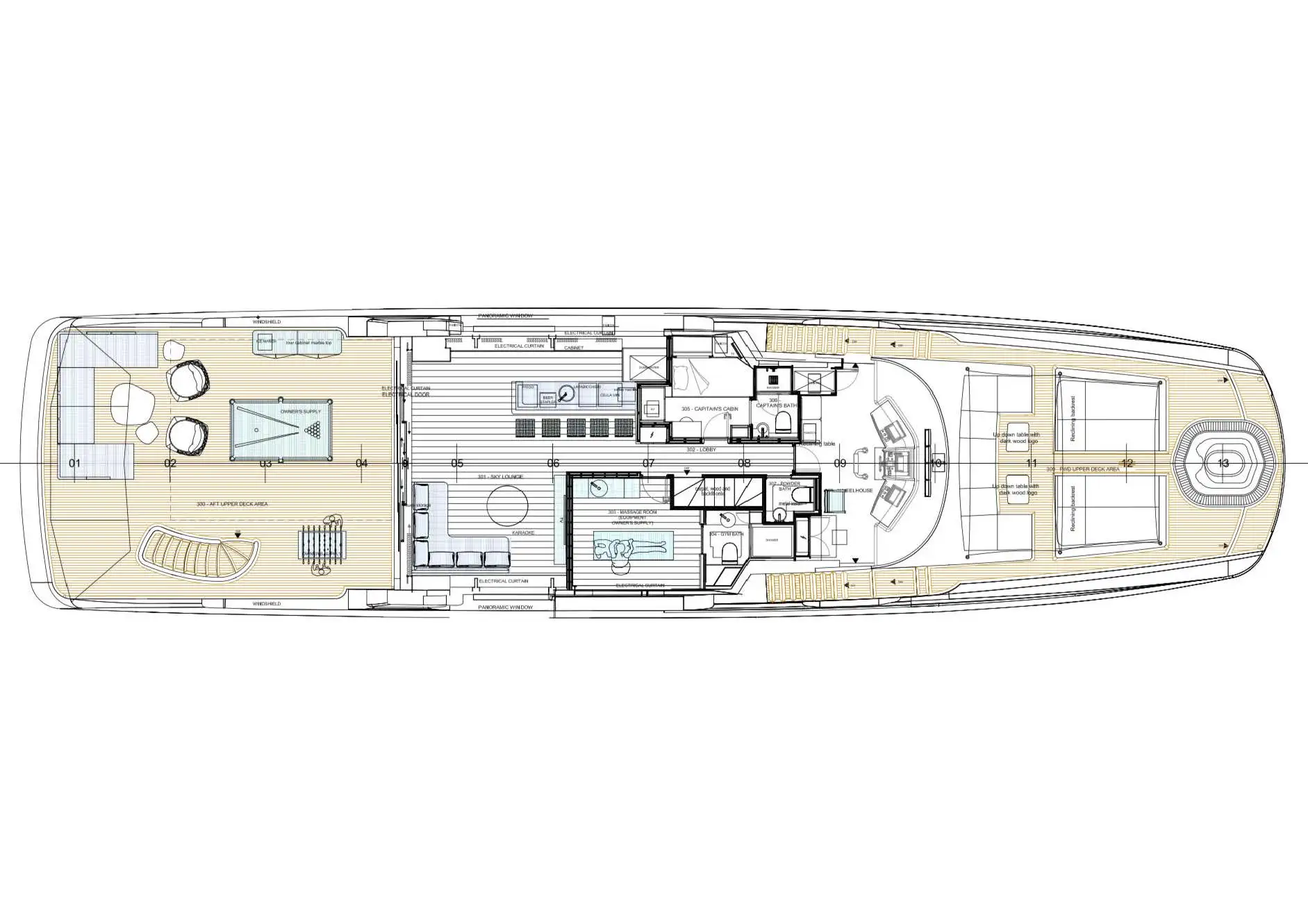 - Gyro-stabilised pool table on the upper deck aft