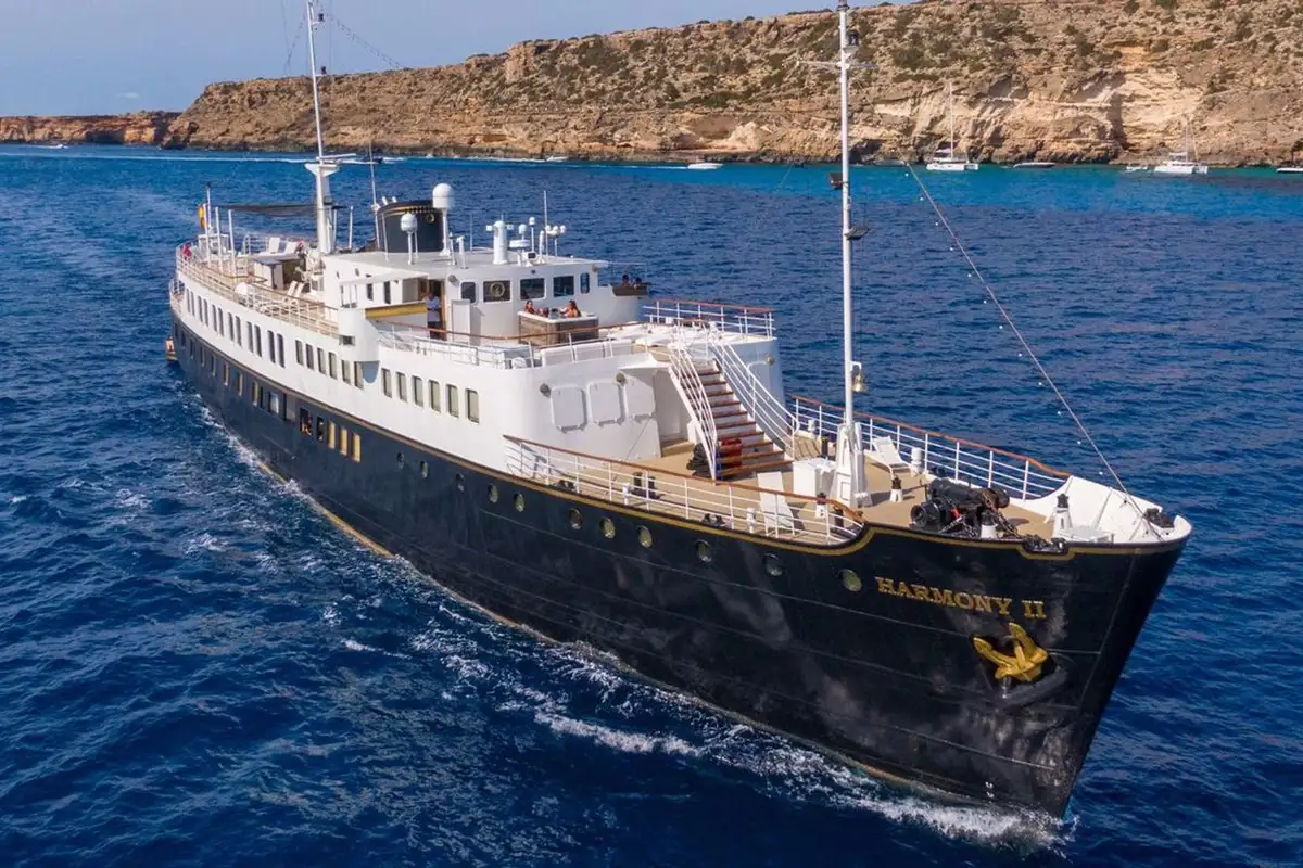 The 58m (189ft) HARMONY II is ideally configured for a sociable holiday on the water with a big group of friends or a large extended family. Designed to host up to 16 guests in eight cabins with eight crew at your service, this classic mid-20th century vessel has been brought up to date with a full refit just three years ago. She is offered for charter in sparkling condition with full air conditioning and a wi-fi internet connection throughout.