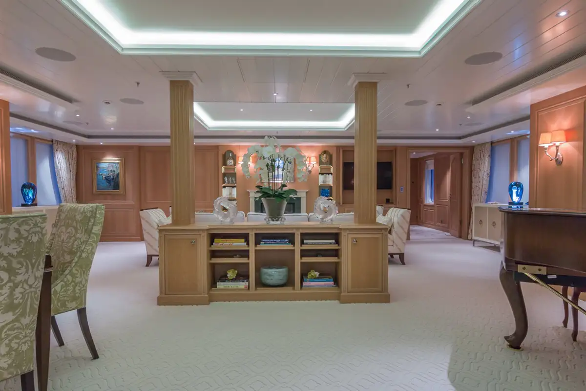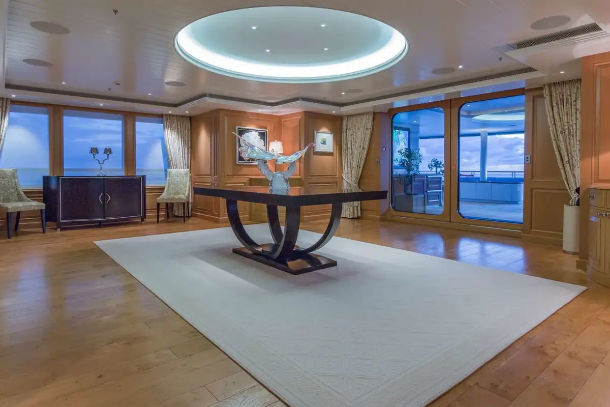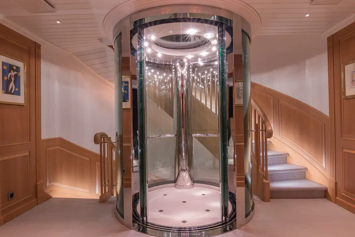 Accessibility is thoughtfully integrated, with a spacious elevator connecting all decks, except the sun deck, providing wheelchair access and effortless movement throughout the yacht.