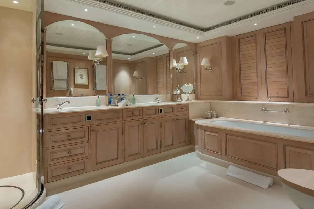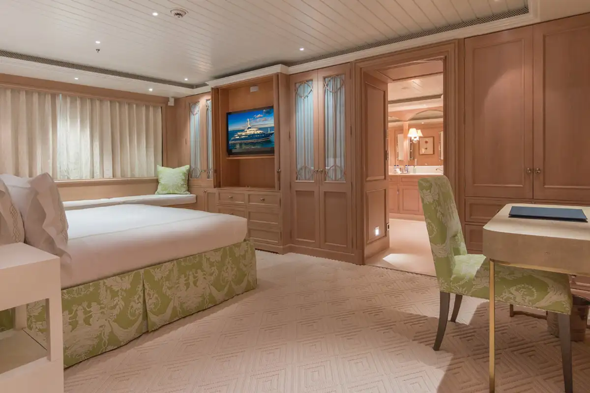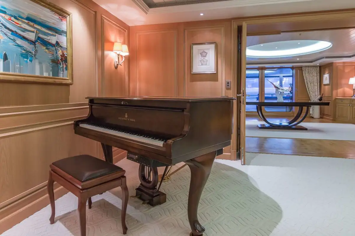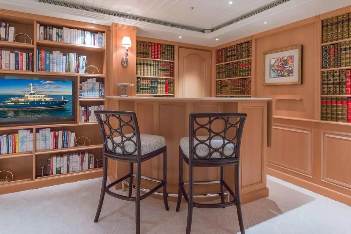 Accessibility is thoughtfully integrated, with a spacious elevator connecting all decks, except the sun deck, providing wheelchair access and effortless movement throughout the yacht.