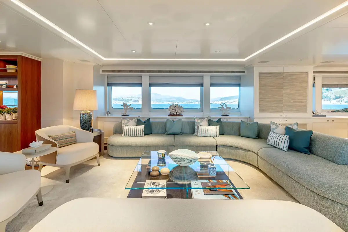 Motor yacht IDEFIX II, formerly ESTEL, is a 47-metre Heesen masterpiece, blending sleek semi‑displacement performance with interiors by Intarya that evoke a sophisticated beach house. The main deck lounge is awash with natural light, its pale oak panelling and neutral palette creating an atmosphere of serene refinement, while the sky lounge above offers an intimate retreat for cocktails or quiet reading.