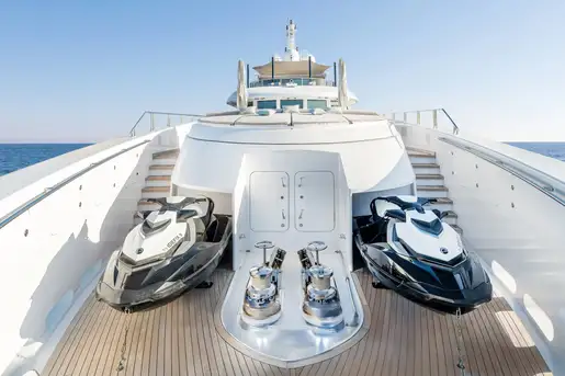 IDEFIX II’s toy locker guarantees endless adventure, with two jetskis, an eFoil, paddleboards, water skis and snorkelling equipment, alongside a sleek Castoldi tender. At anchor, her state‑of‑the‑art stabilisers ensure a smooth, restful platform for every pastime.