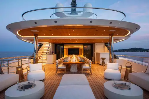From sunrise dips in the main deck pool to sunset cocktails on the bridge deck, INFINITE JEST offers unparalleled versatility. Relax in the beach club, work out in the gym, or enjoy one of several al fresco dining and entertaining spaces designed for every mood and moment. Her adaptable cabin layout sleeps 12 guests plus two staff in refined comfort. The vast principal suite boasts direct access to a private deck – perfect for peaceful mornings and spectacular views.