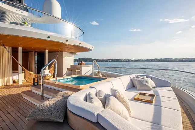 - Infinity jacuzzi/pool on the main deck aft & jacuzzi on the bridge deck aft