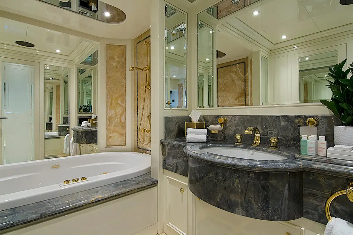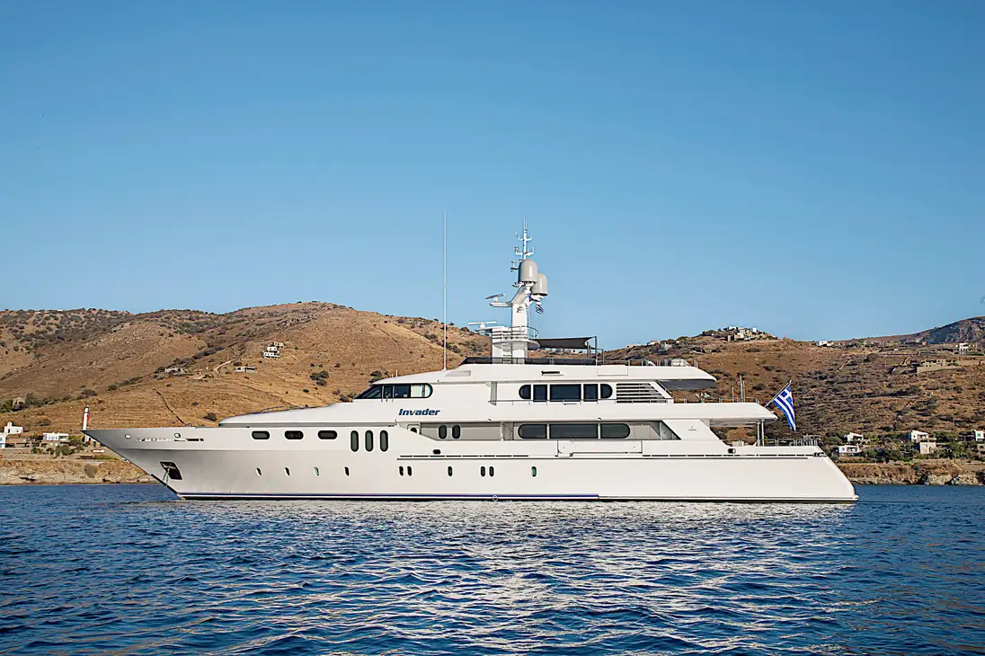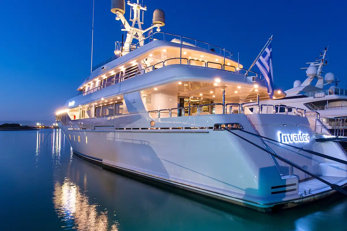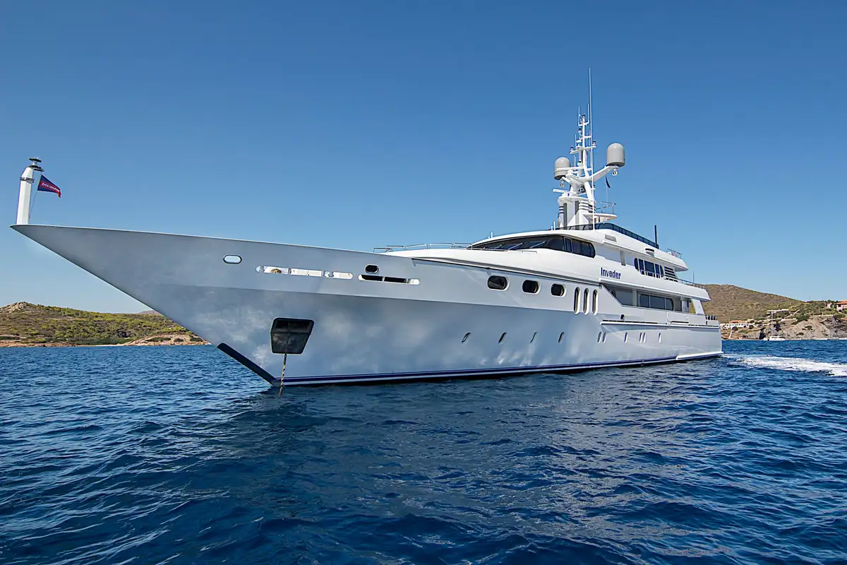 Having recently completed a thorough refit, INVADER, looks better and more elegant than ever. The stunning new interior uses a blend of wood panelling with laque gloss finish combined with creme and natural high quality fabrics for a very sophisticated look. Intricate designs using inlays of hand selected onyx and marble are used as flooring in the foyers, baths and dining room giving an artistic feel to the interior.
