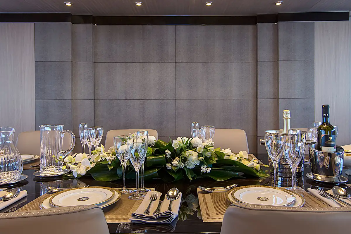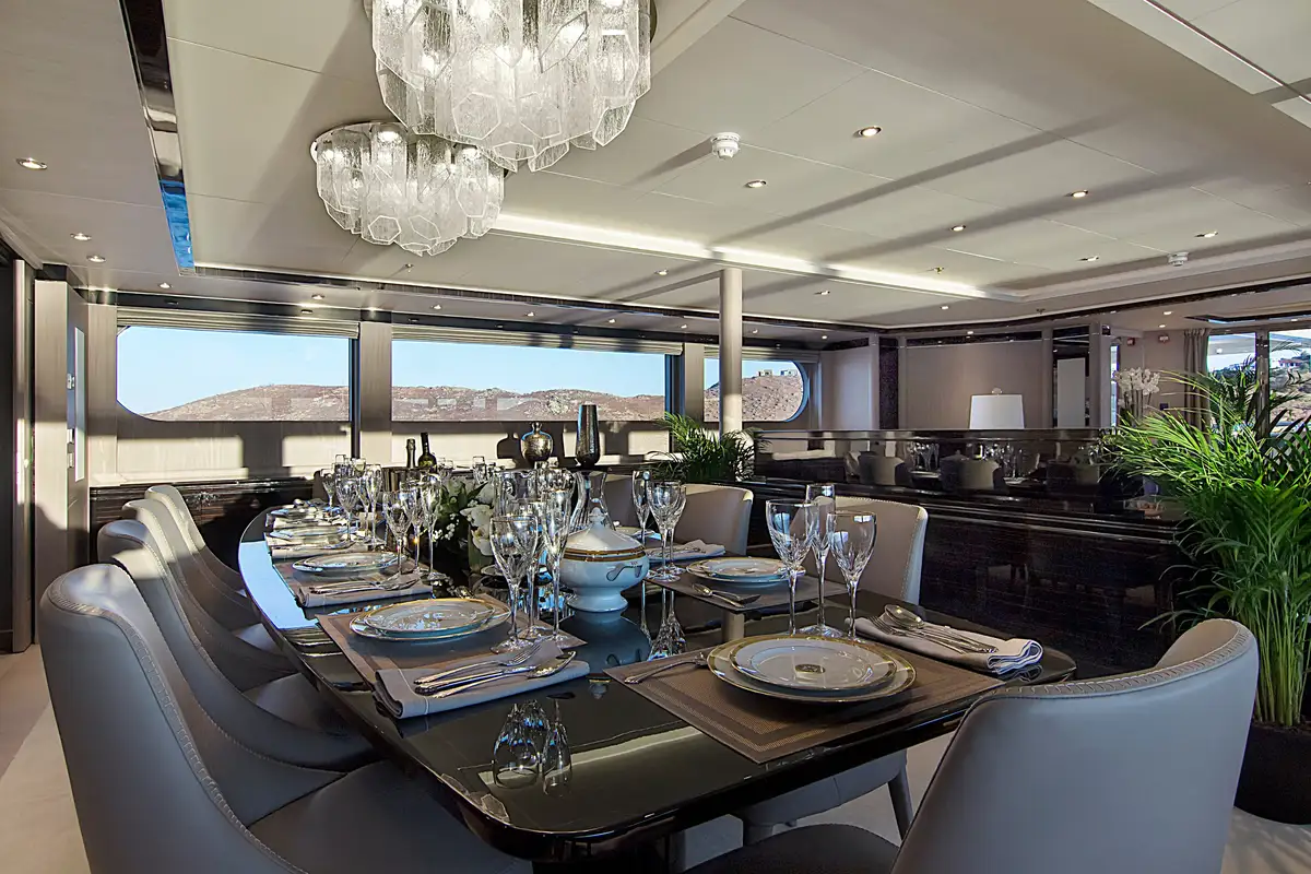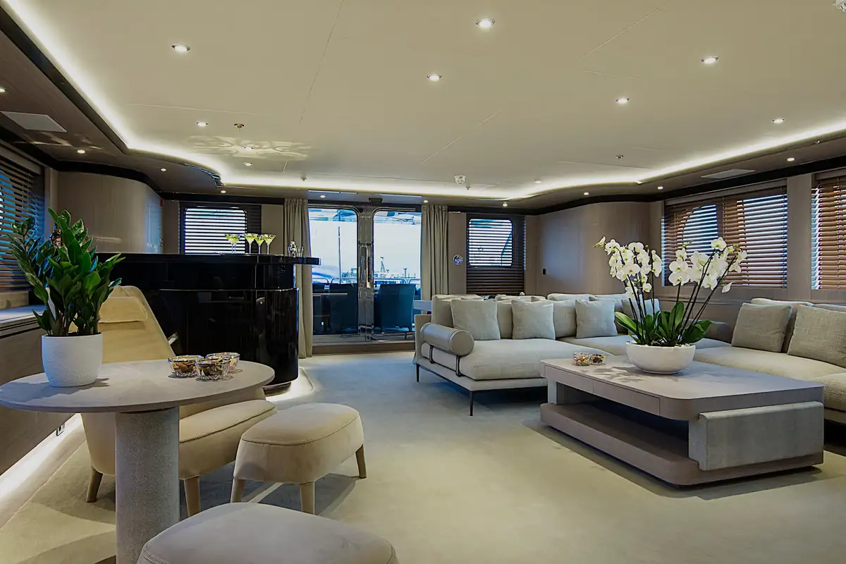 Having recently completed a thorough refit, INVADER, looks better and more elegant than ever. The stunning new interior uses a blend of wood panelling with laque gloss finish combined with creme and natural high quality fabrics for a very sophisticated look. Intricate designs using inlays of hand selected onyx and marble are used as flooring in the foyers, baths and dining room giving an artistic feel to the interior.