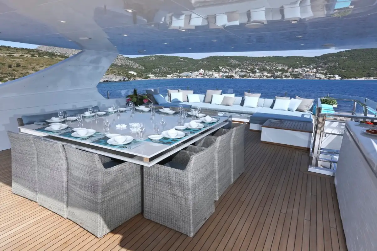 With three decks, three dining areas, plenty of seating areas and a flexible accommodation layout, IPANEMAS is perfectly suited for a laid-back charter exploring Greece’s beautiful islands.