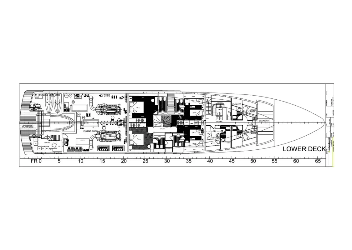 Descending to the lower deck unveils four delightful guest suites that give your guest flexible sleeping arrangements. The suites include two double suites to the rear and two twin-berth cabins forward of the lobby. Each suite boasts luxurious en suite bathrooms.