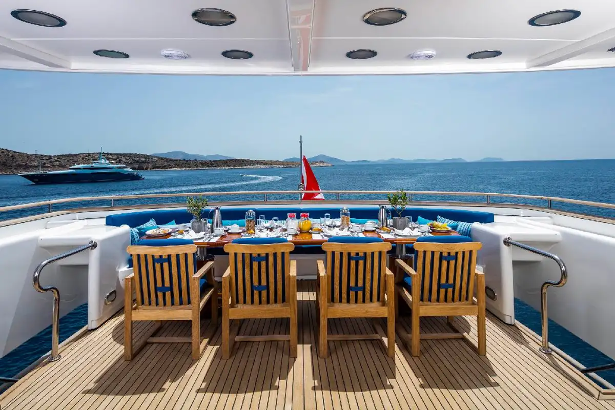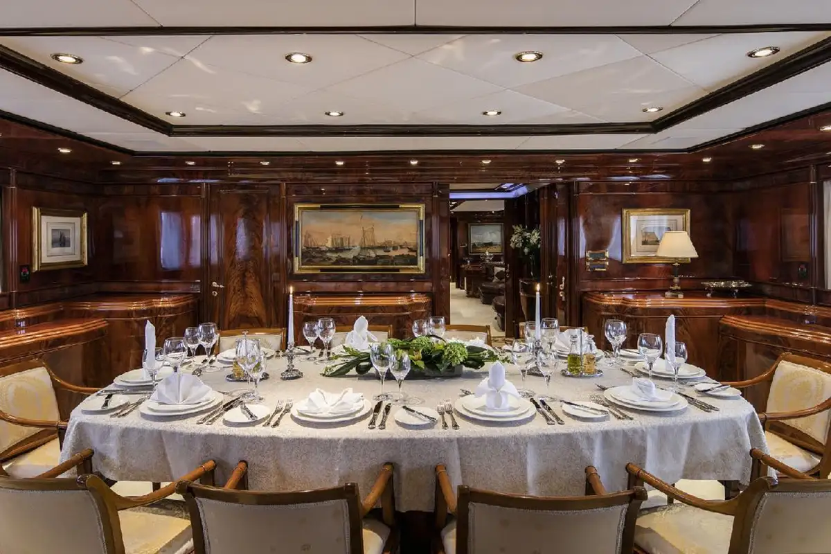 JAAN is a classic. Refitted in 2024, her interior blends glossy veneer with pale upholstery and dark marble for pure opulence. She offers the opportunity for you to host a party of 12 on a wonderful charter.
