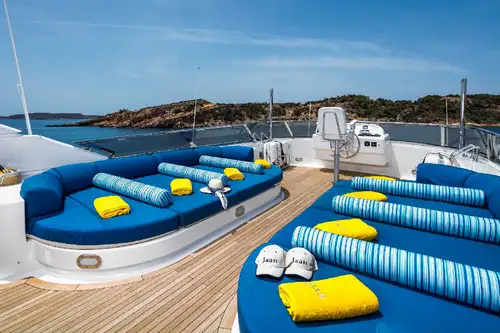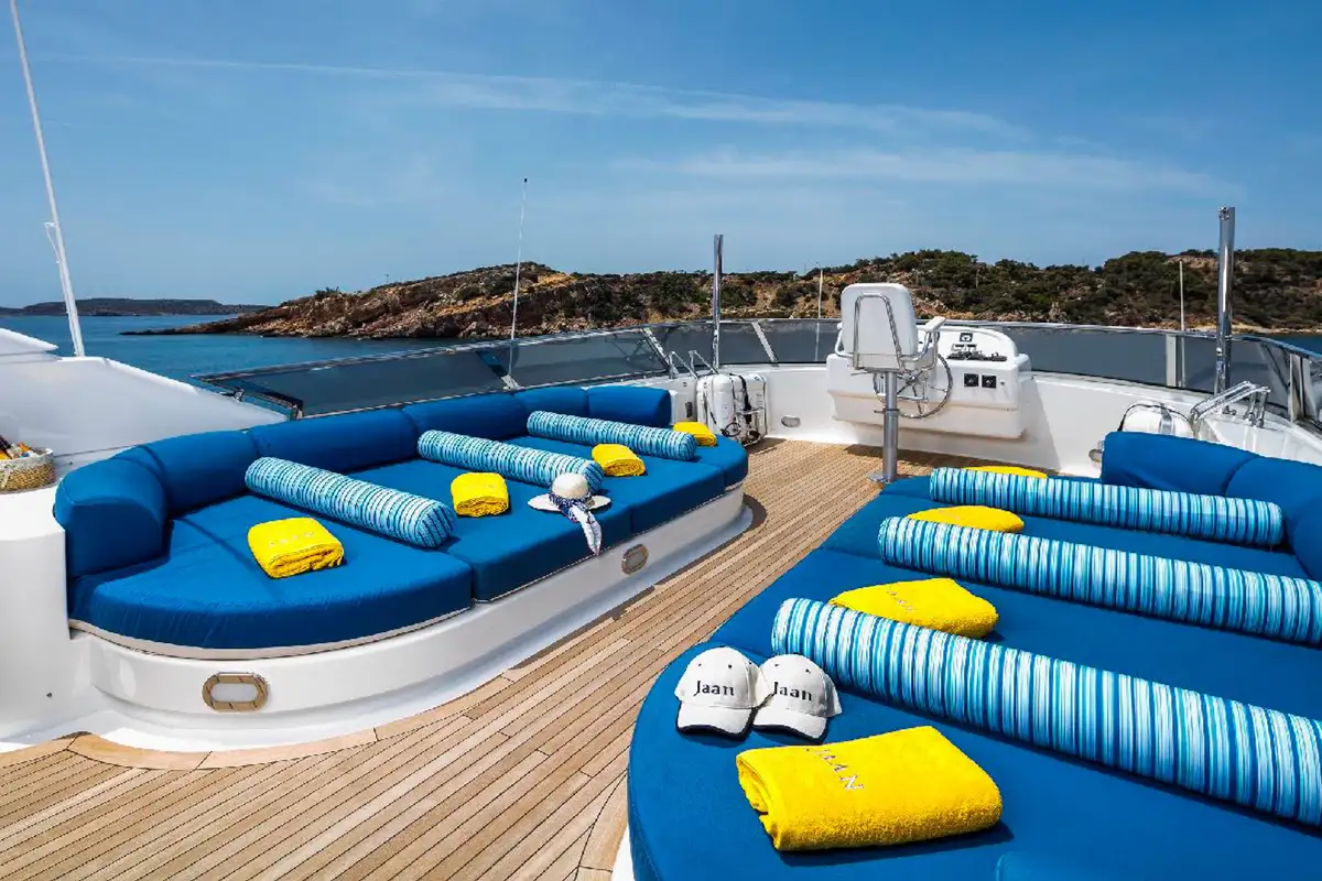 Now boasting a beautifully renovated interior, JAAN's indoor spaces radiate luxury and comfort thanks to an abundance of light. Whilst on board, guests can enjoy modern amenities such as air conditioning, comprehensive WiFi, as well as zero-speed stabilizers both underway and at anchor to ensure a seamless and comfortable journey.