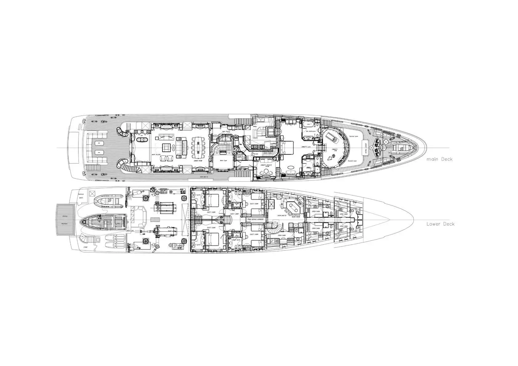 - Split level master cabin with private access to the foredeck