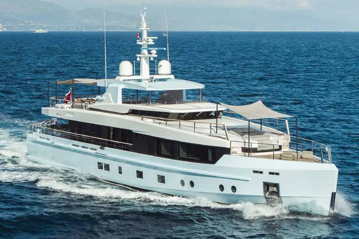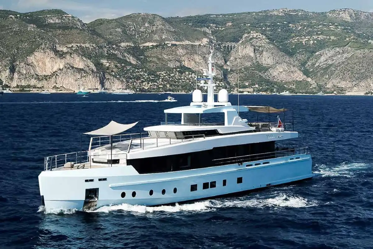 JESMA II is a 39.7m (130.3ft) Impero 40 built in aluminium by The Italian Sea Group's Admiral shipyard to RINA classification and delivered in 2017. Her bold, angular exterior is by Luca Dini and the in-house team and her distinctive hull colour is inspired by the summer skies of the Italian Riviera. Vertical topsides maximise the volume of her interior and she has a usefully shallow draught of 1.9m (6.2ft).