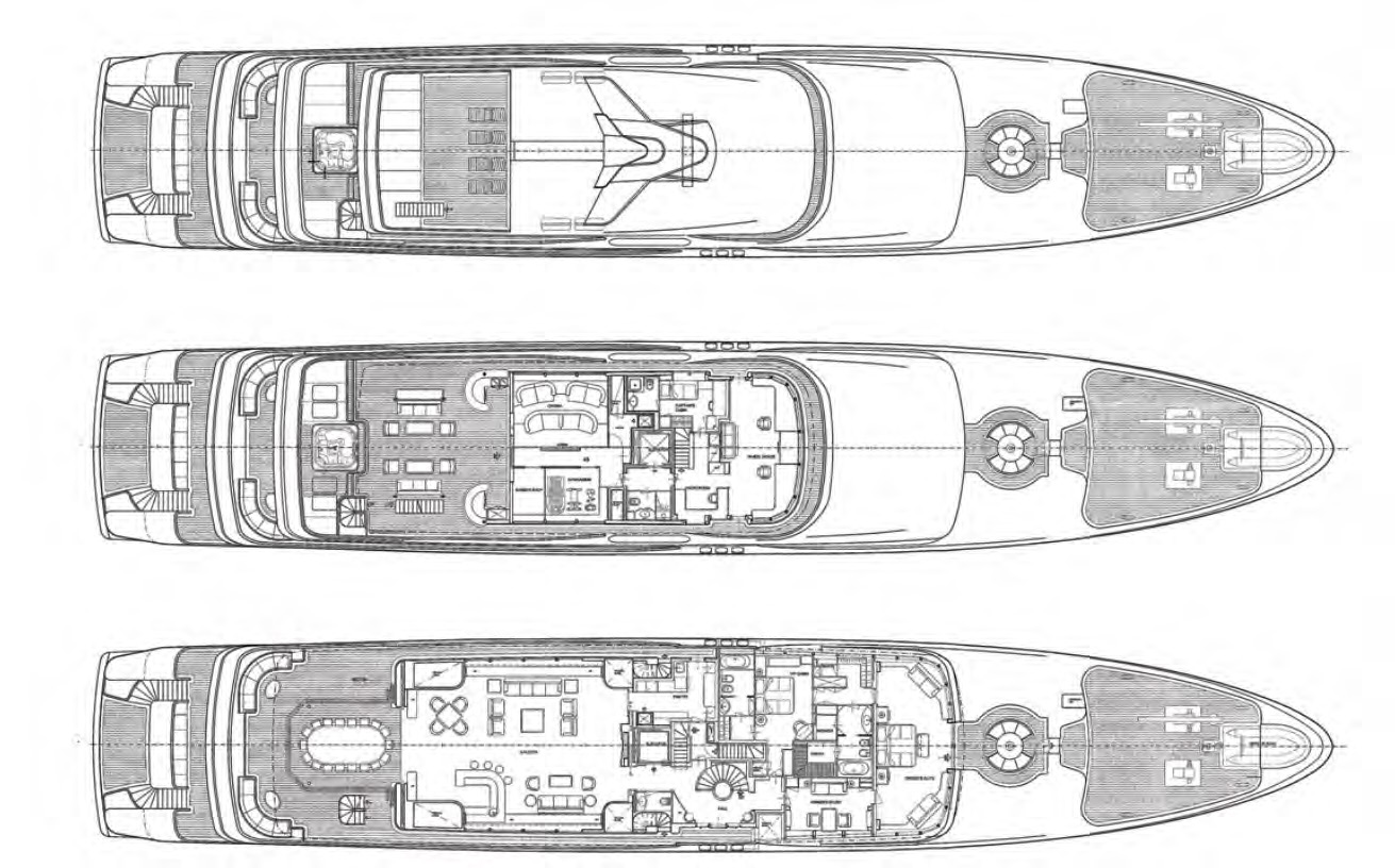 Outdoor living is elevated to new heights on board, with an expansive sundeck inviting guests to unwind on sun loungers, or take a dip in the jacuzzi, all while enjoying breathtaking vistas. The upper deck features a versatile winter garden dining area, which can be enclosed for climate-controlled comfort or opened to the sea breeze. A spacious beach club at the stern offers direct access to the water, creating the perfect setting for sunbathing or launching water toys.