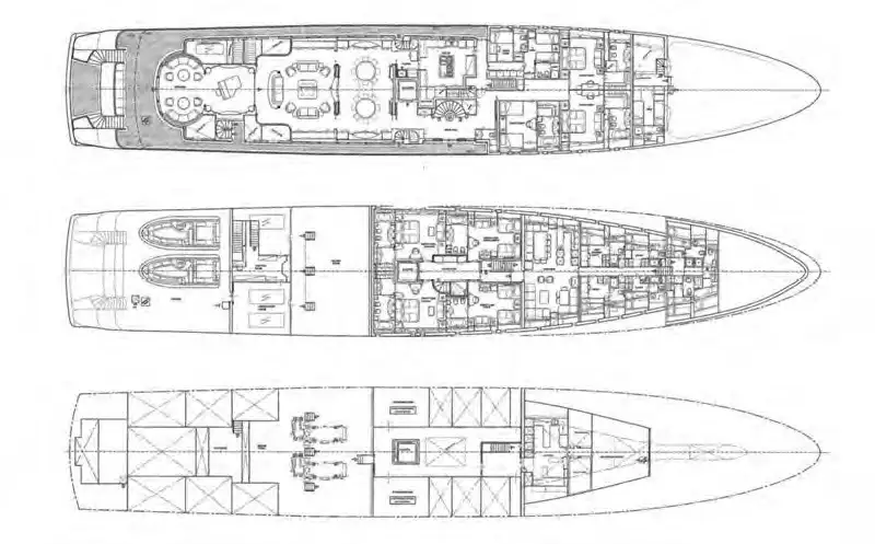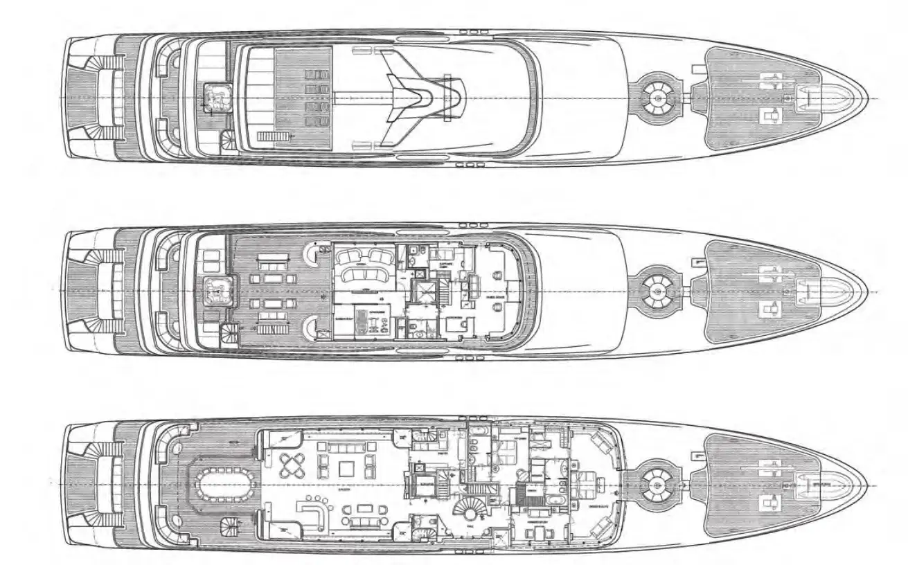 Accommodating up to 12 guests in nine lavish cabins, JOIA THE CROWN JEWEL offers a sanctuary for every guest. The full-beam master cabin, located on the main deck, provides panoramic views and a sumptuous en-suite bathroom. Five VIP cabins and three twin cabins, each with their own en suite facilities, ensure comfort and privacy for all. An elevator seamlessly connects all decks, enhancing accessibility throughout the yacht.
