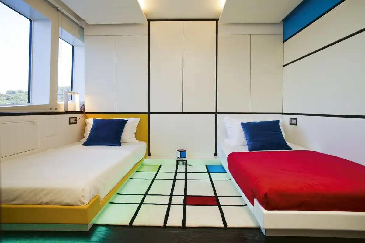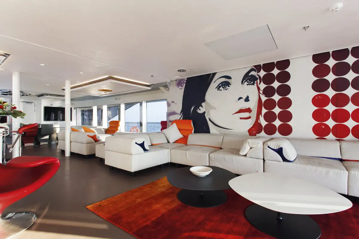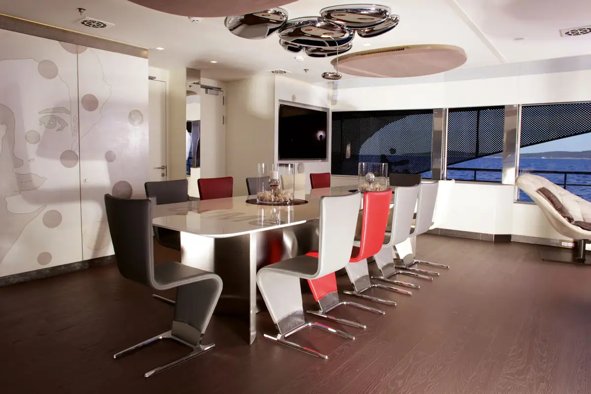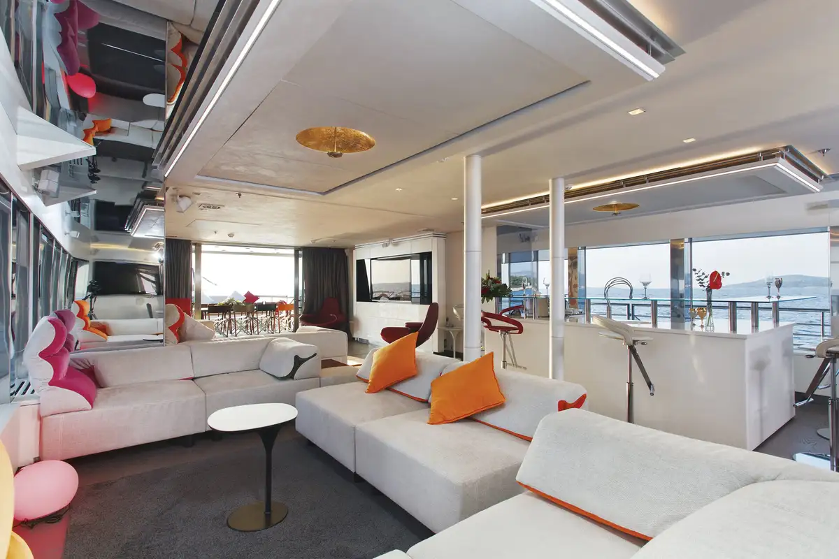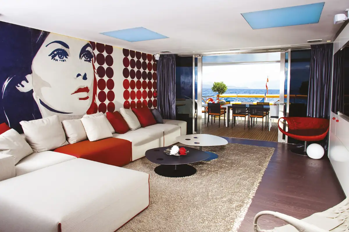 This is a yacht for the playful and eclectic, lovers of bold colours and modern art. These are both themes that inspire the interiors and are belied by her scarlet, gold and cream hull, instantly marking her out - just like her guests - as proudly different and definitely special.