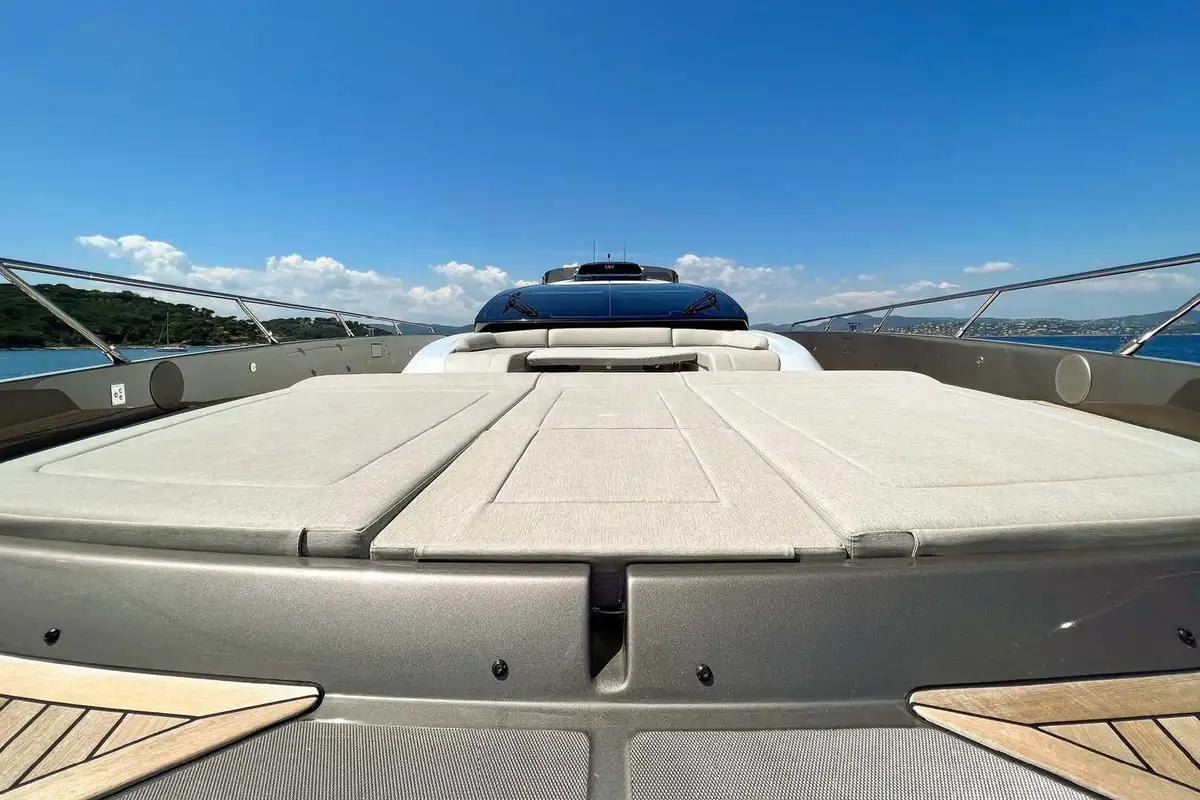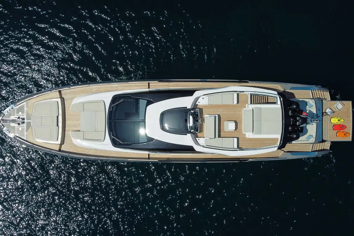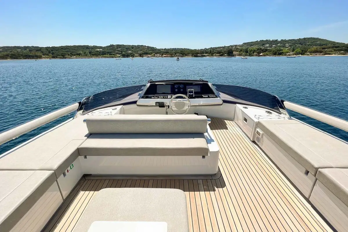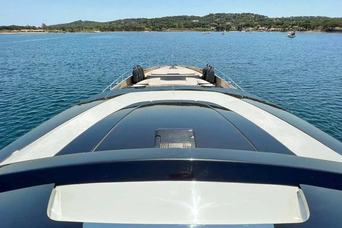 KAR, a Riva 88 Folgore, was meticulously built in 2021. Set to embark on her inaugural summer charter season, KAR embodies the essence of a new sportfly - a perfect blend of strength, innovation, and breathtaking beauty. Equipped with zero-speed stabilizers and boasting a range of custom features, KAR promises an unparalleled luxury experience.