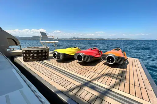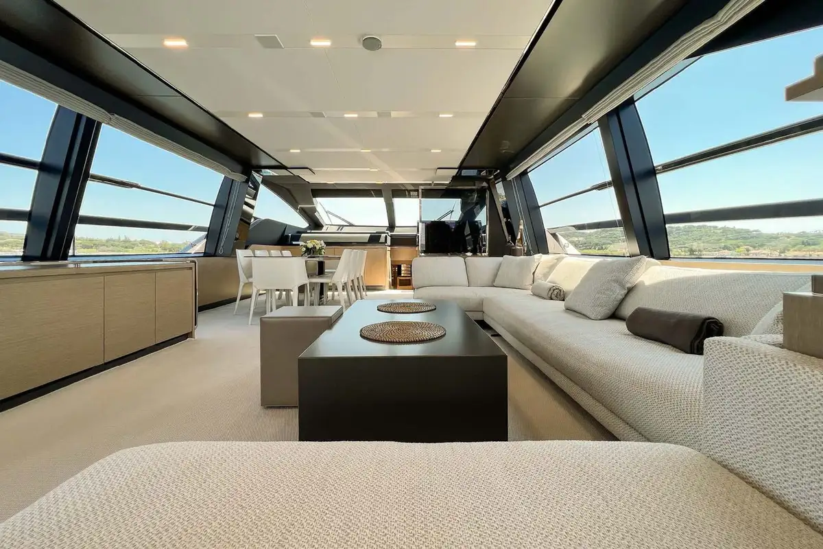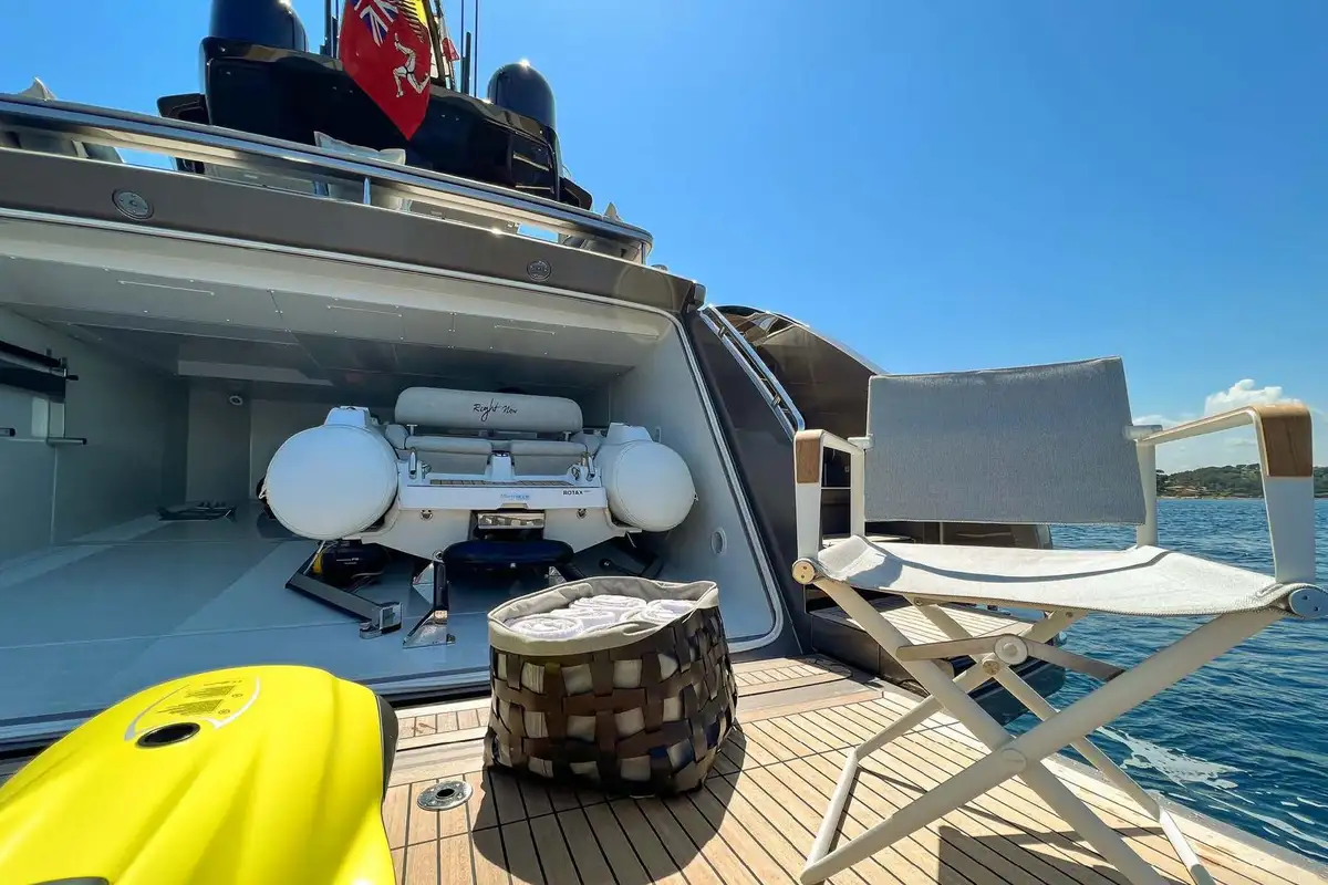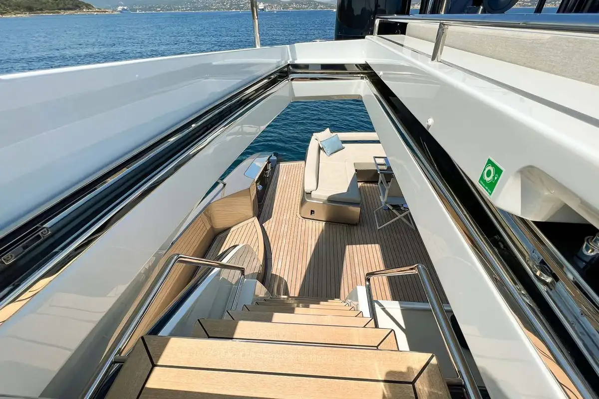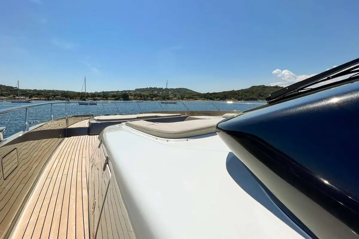 KAR, a Riva 88 Folgore, was meticulously built in 2021. Set to embark on her inaugural summer charter season, KAR embodies the essence of a new sportfly - a perfect blend of strength, innovation, and breathtaking beauty. Equipped with zero-speed stabilizers and boasting a range of custom features, KAR promises an unparalleled luxury experience.