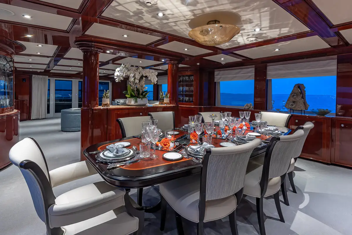 Another restaurant with its own marina – just a quick call from your charter team on the VHF and you'll be ready to enjoy a unique yacht charter experience from this New England beach house-style dining room on the water.