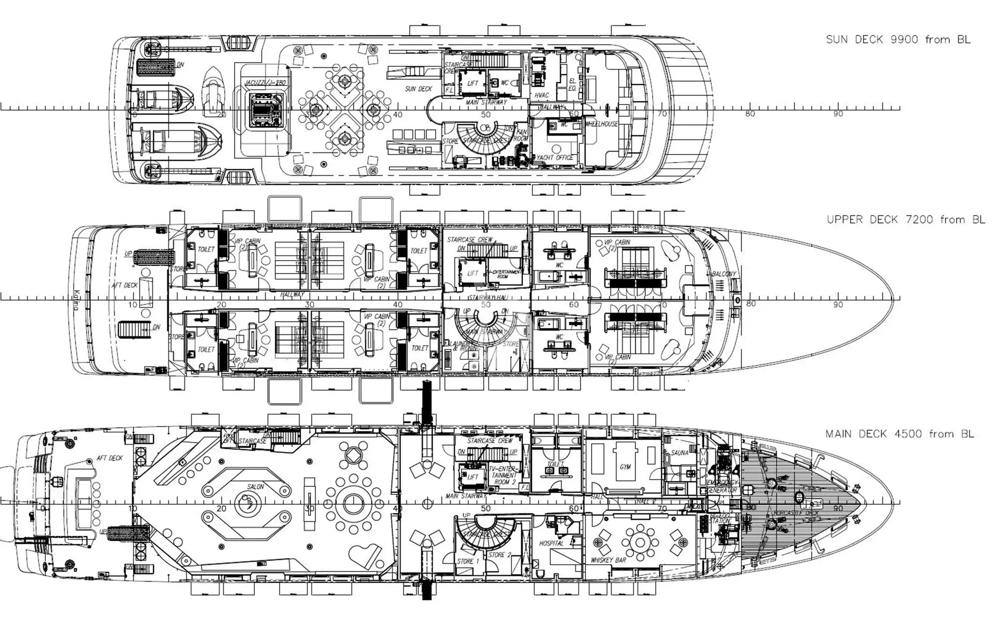 - Fold down balconies off the upper deck VIP cabins