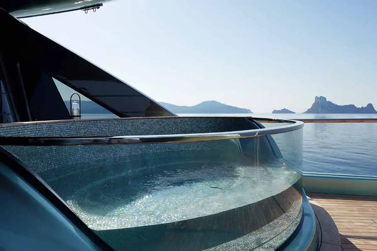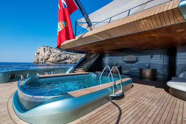 - 6m glass-fronted pool on the lower deck aft