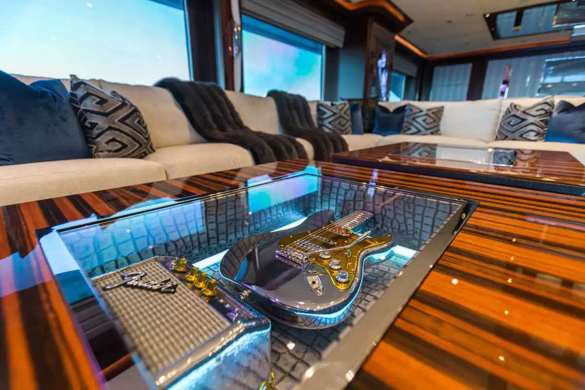 The ultimate party boat for rock music fans or musicians, KING BABY is a 44-metre (144ft) tri-deck yacht festooned with high-end guitars, rock-inspired art and furniture, carefully curated rock photography and more. Combined with style inspiration from the luxe rock-chic King Baby jewellery brand, she offers a superb yacht charter experience for up to 10 guests in five luxurious cabins, with a unique design aesthetic that has just been thoroughly updated with a major refit in 2023. Let the good times roll!