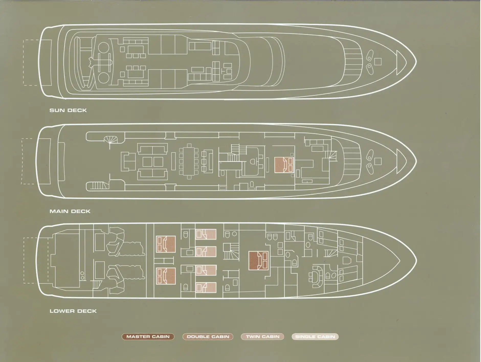 | Types de cabines | 6 (4 × double, 2 × twin, 2 × lits supplémentaires) |