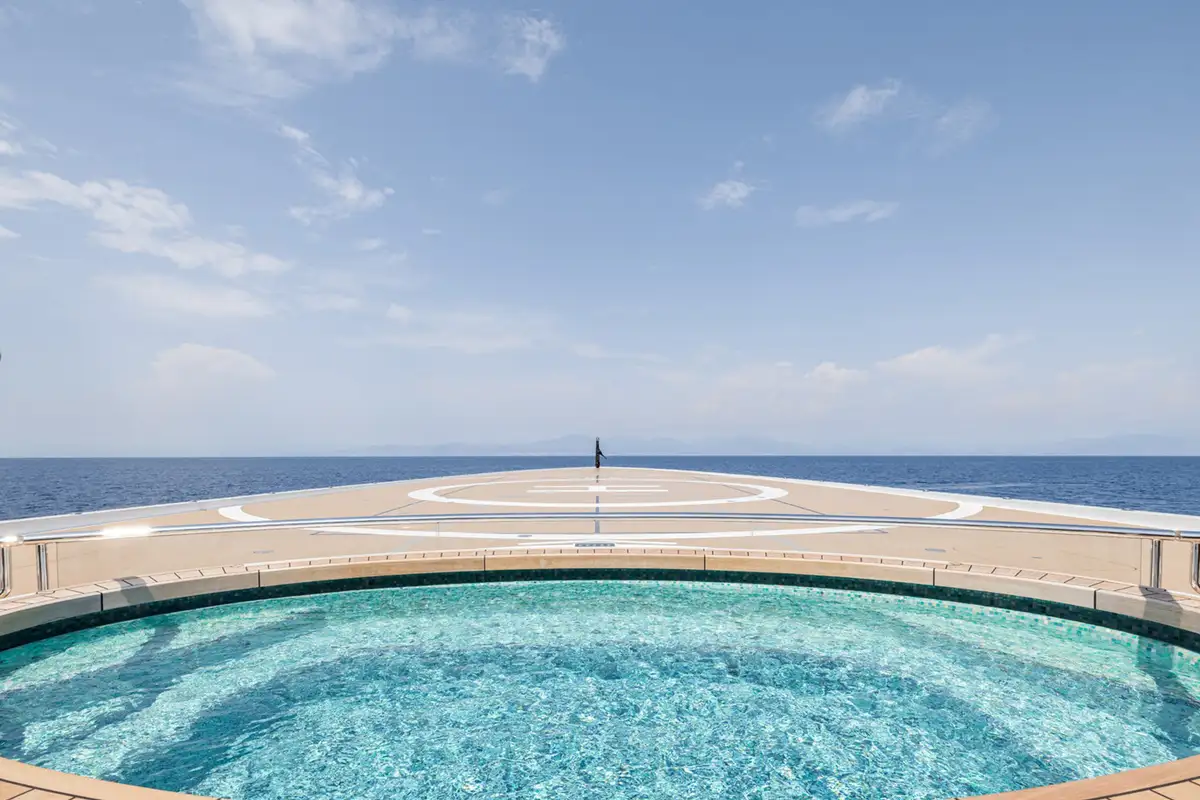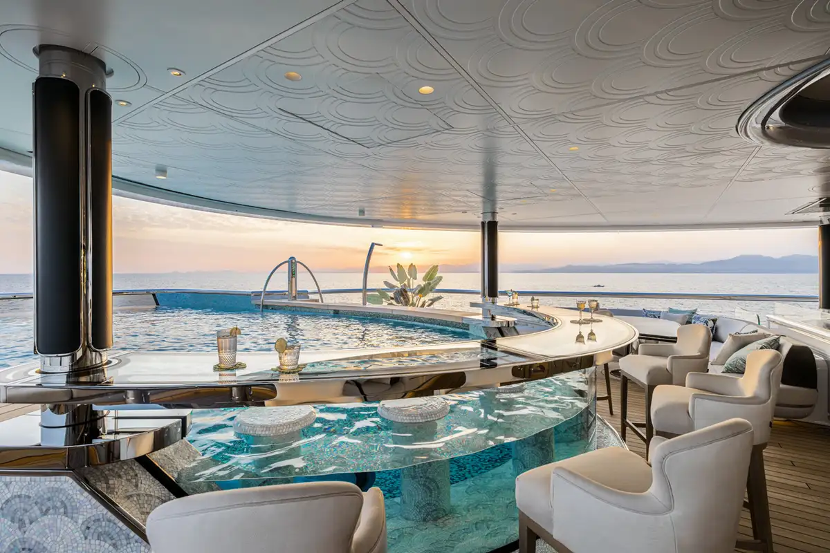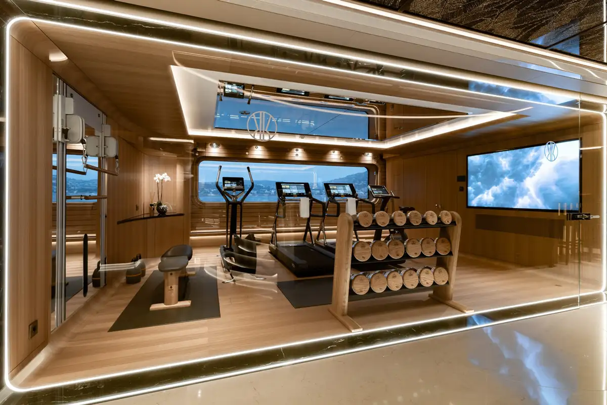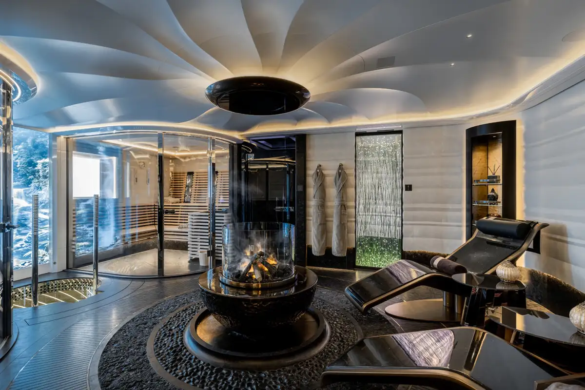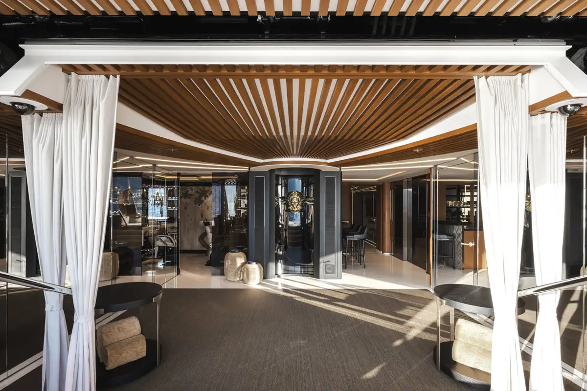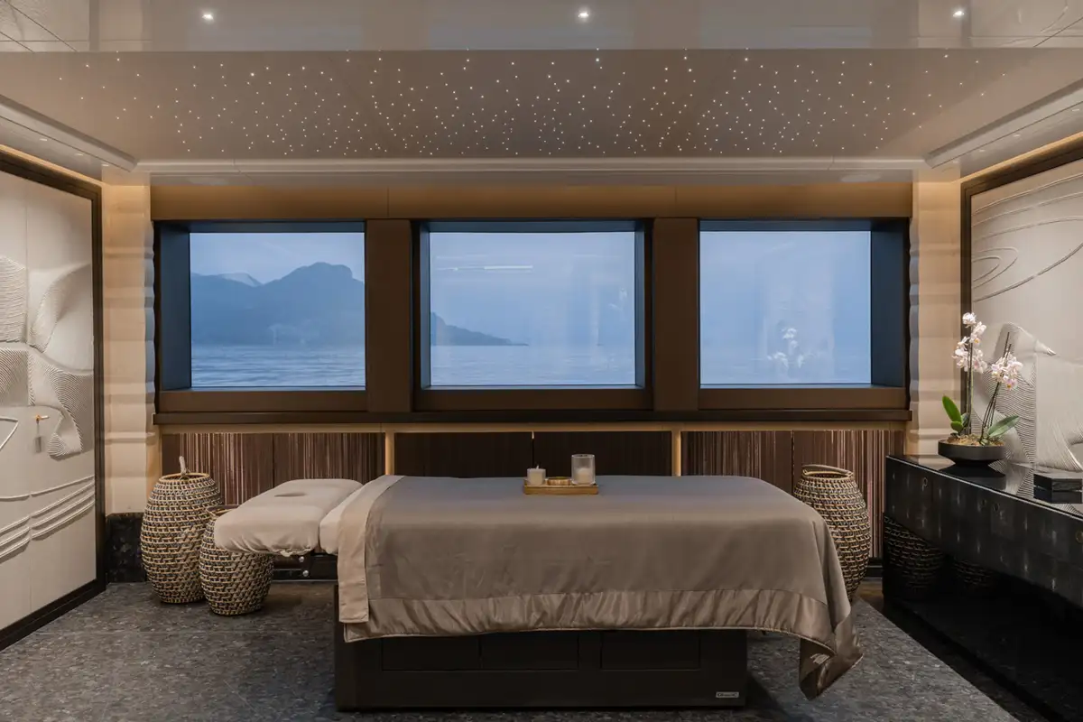 Over her six decks you can enjoy a multitude of experiences, you might enjoy a private movie screening with friends in the onboard cinema, or spend some personal time in the gym and wellness suite before unwinding in the sauna and then appreciate some pampering in the spa and hair salon. There’s also the hammam, sauna, waterfall shower, yoga room, and cryotherapy chamber as well as a choice of pools and jacuzzis