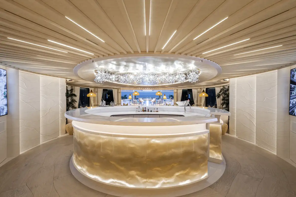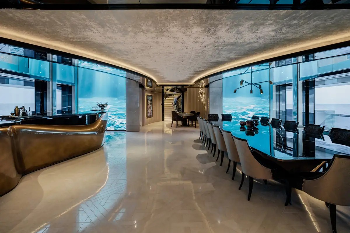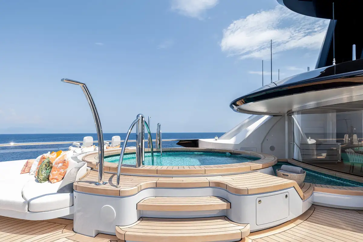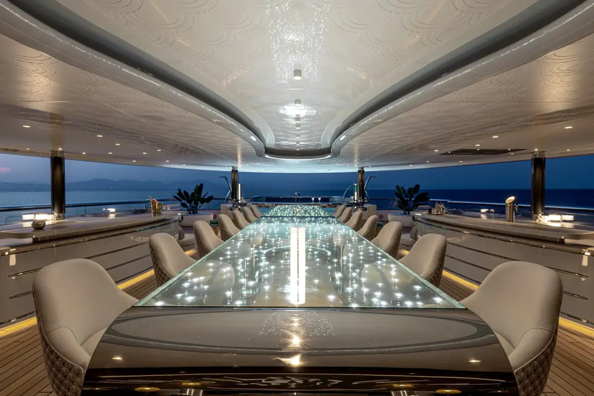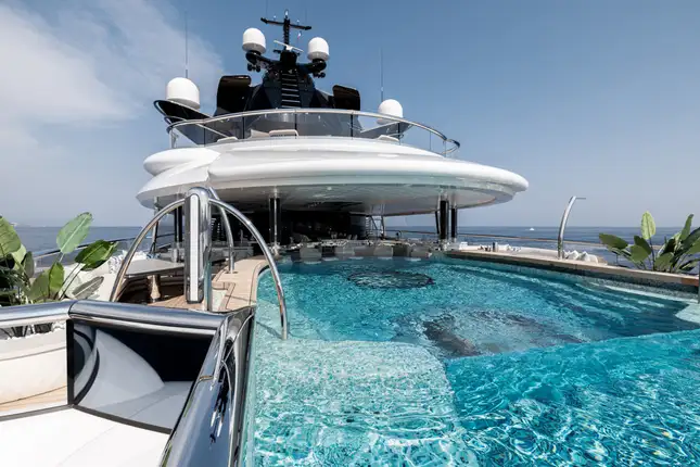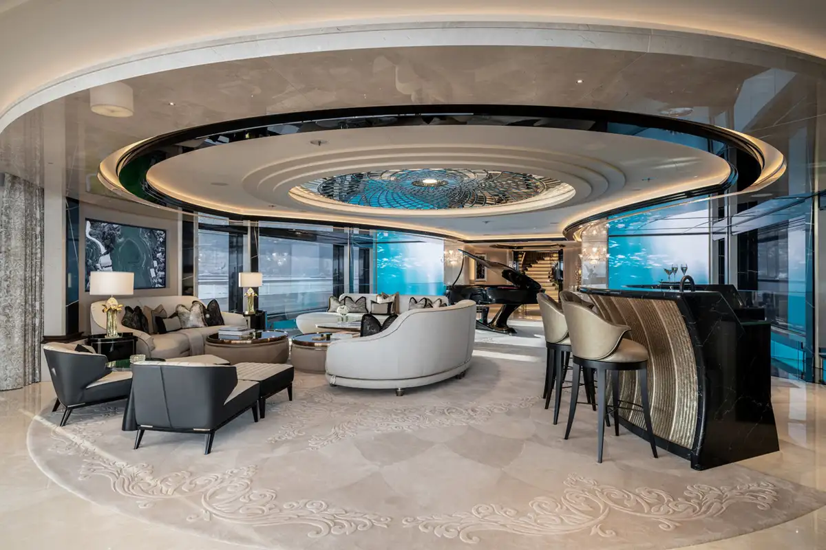 Over her six decks you can enjoy a multitude of experiences, you might enjoy a private movie screening with friends in the onboard cinema, or spend some personal time in the gym and wellness suite before unwinding in the sauna and then appreciate some pampering in the spa and hair salon. There’s also the hammam, sauna, waterfall shower, yoga room, and cryotherapy chamber as well as a choice of pools and jacuzzis