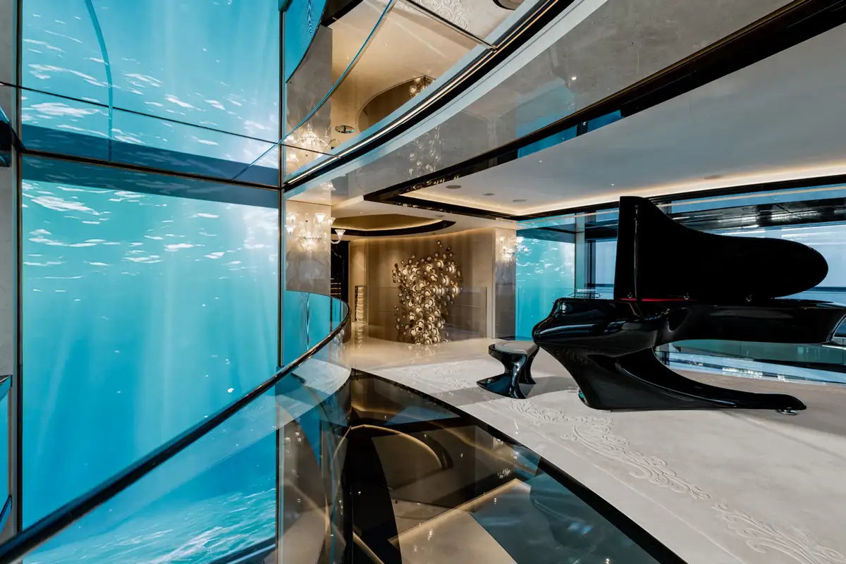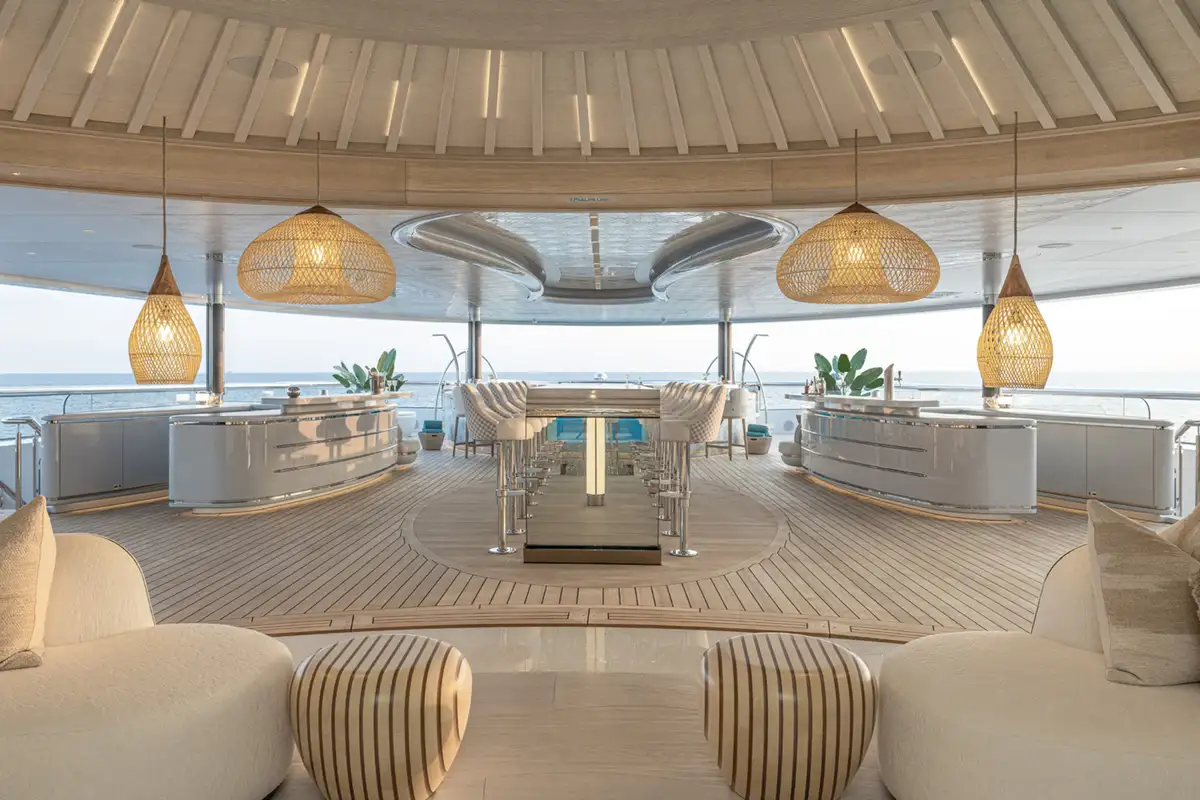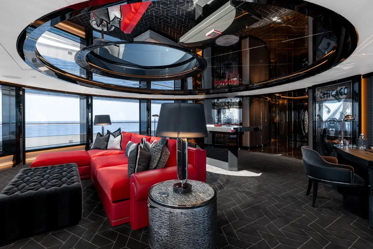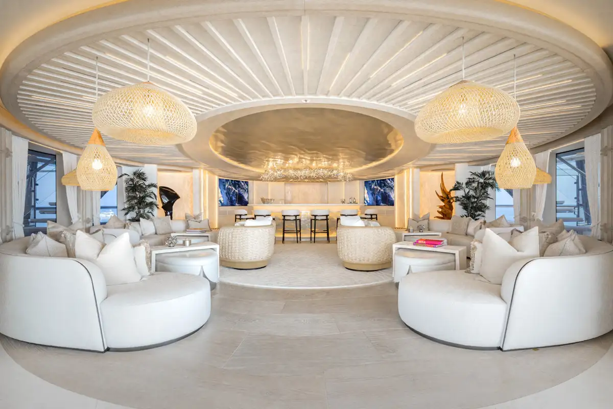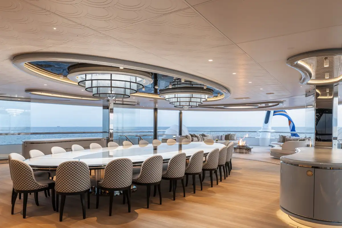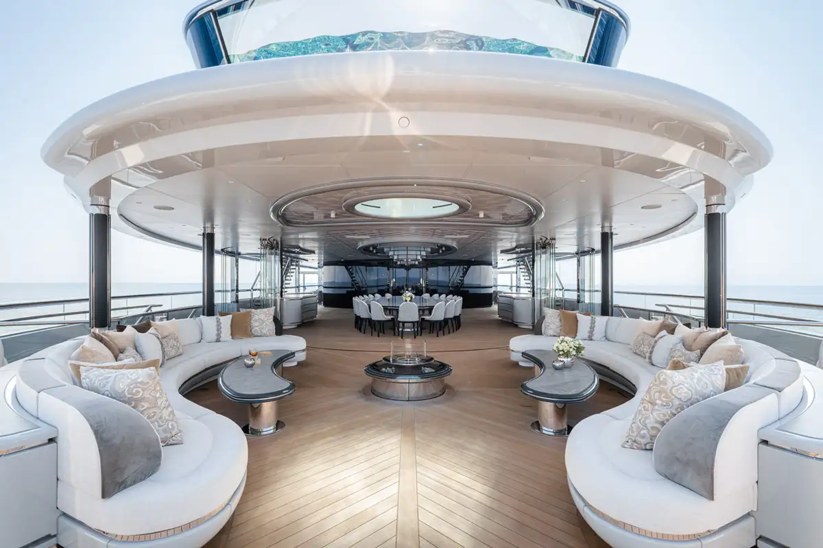 Over her six decks you can enjoy a multitude of experiences, you might enjoy a private movie screening with friends in the onboard cinema, or spend some personal time in the gym and wellness suite before unwinding in the sauna and then appreciate some pampering in the spa and hair salon. There’s also the hammam, sauna, waterfall shower, yoga room, and cryotherapy chamber as well as a choice of pools and jacuzzis