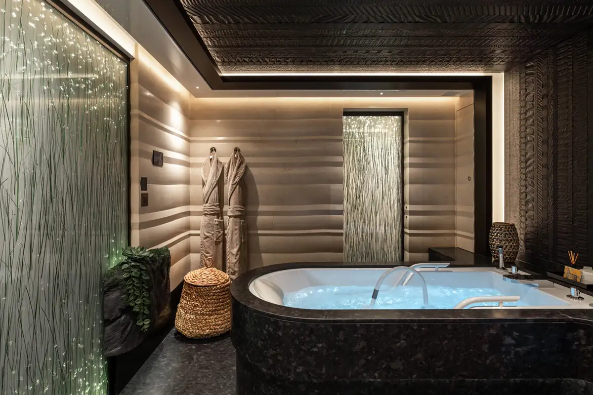 - Spa facilities: Balinese-inspired spa, hammam, sauna, cryotherapy chamber, massage table, waterfall shower, chromotherapy bathtub, 2 x two hair & beauty rooms