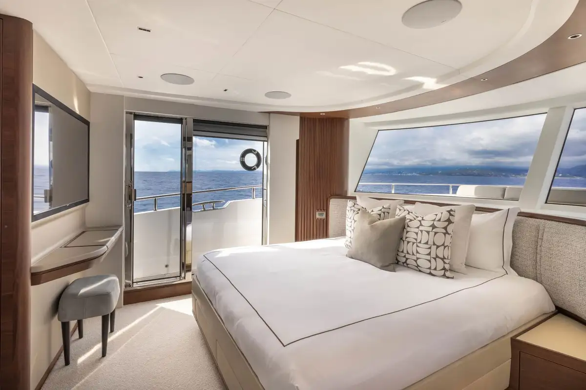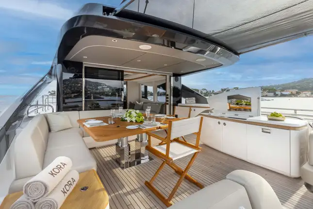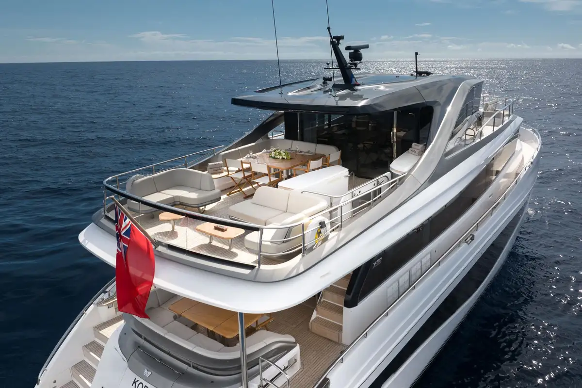 Meet KORA, an 80ft Super Flybridge yacht from British shipyard Princess Yachts’ X80 series, crafted to redefine space, style, and charter sophistication.