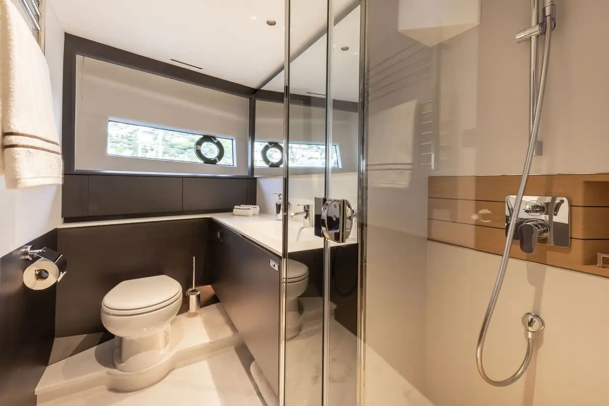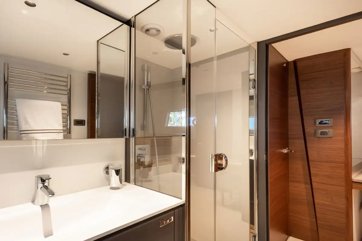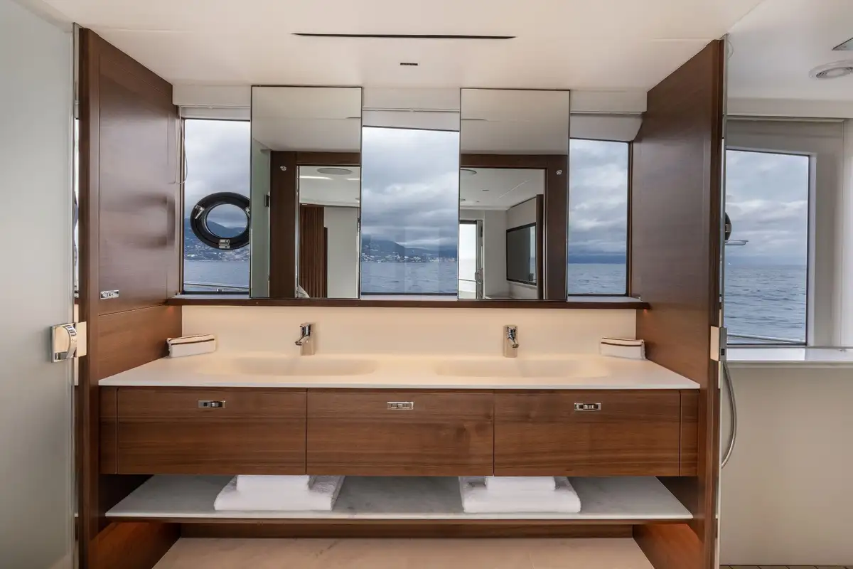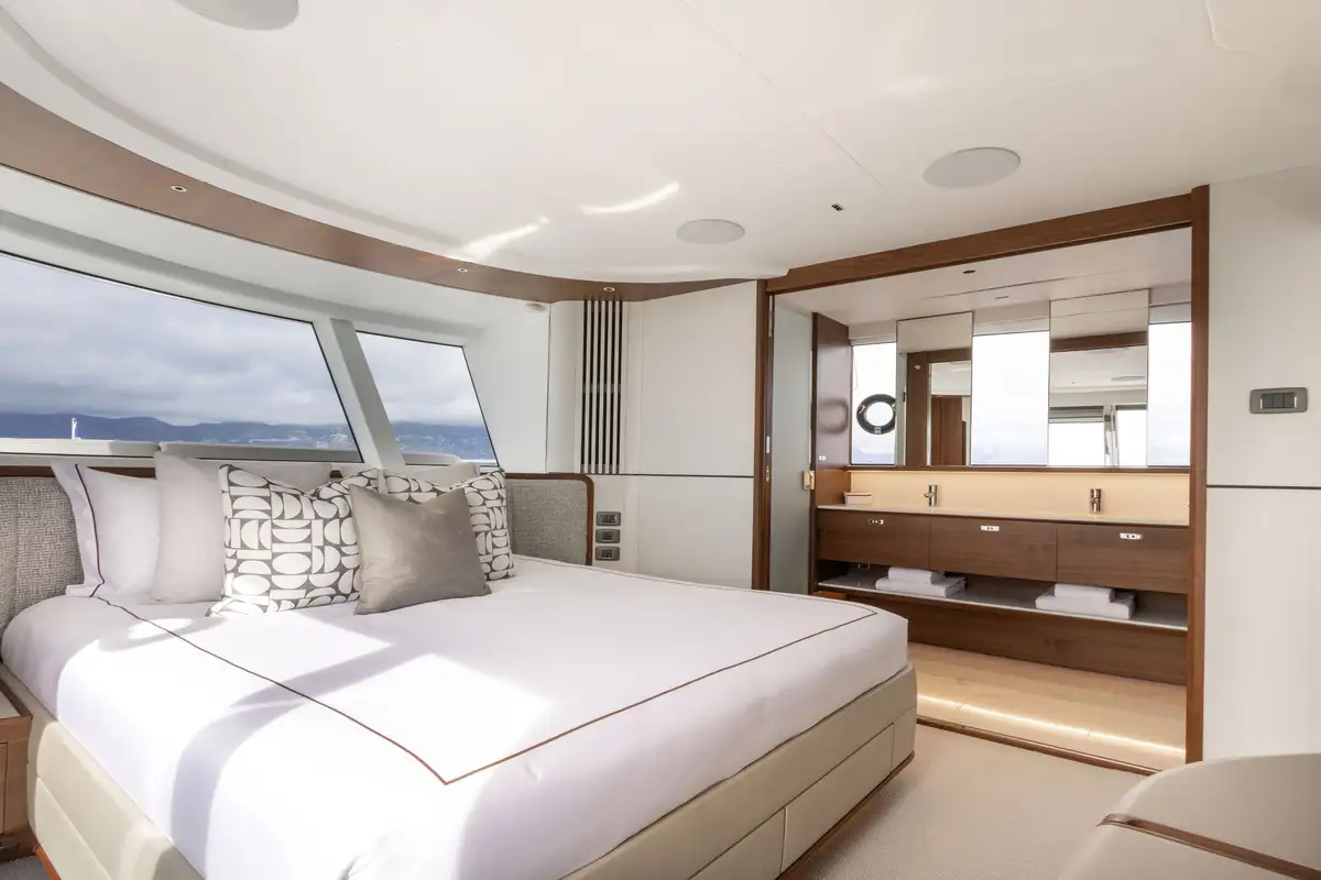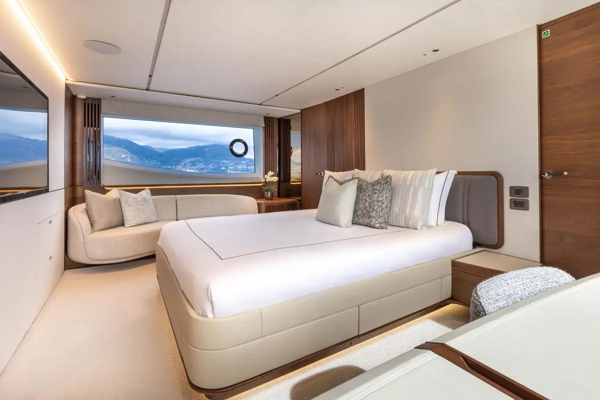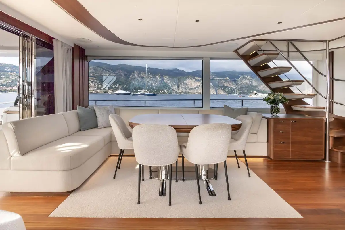 With 30% more interior space than a traditional yacht of this size, KORA is a true standout option. Expansive glazing along the main deck bathes the saloon, galley, and dining area in natural light, creating a seamless connection with the ocean and ensuring the views are always front and centre.