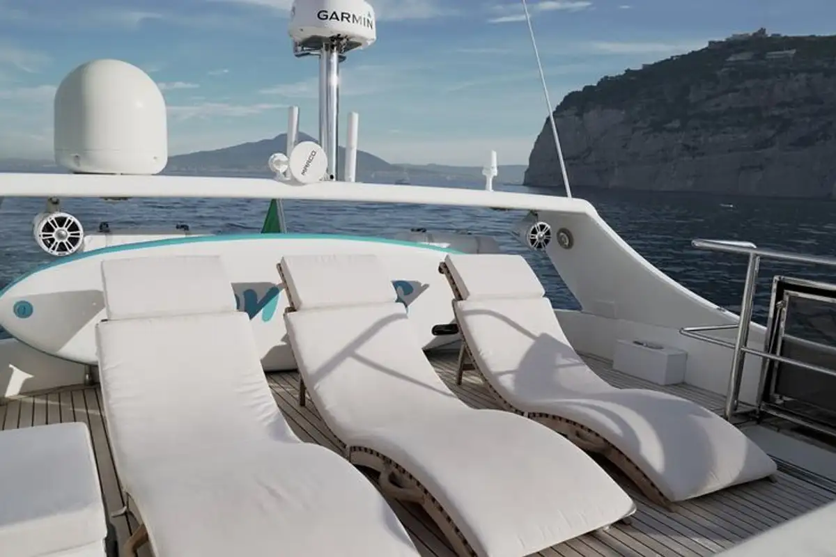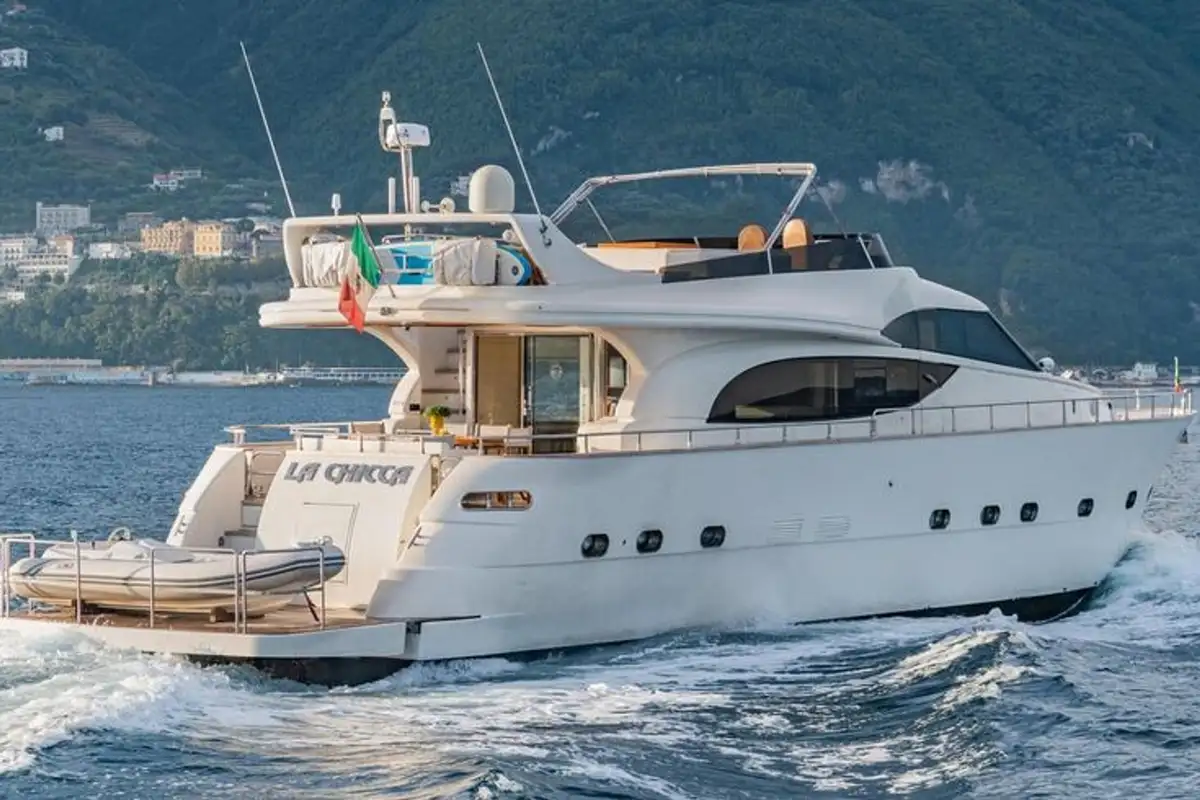 Step aboard LA CHICCA, a 23.7 m Benetti reborn after an extensive refit between 2021 and 2023 refit that delivered zero speed stabilisers, cutting edge tech, and a fresh layer of elegance throughout. Cruising Italy’s storied coastlines, she welcomes eight guests across four refined cabins. A full beam master suite enjoys its own private access from the lounge, while a double, two twins, and a single with a pullman lie forward – perfect for families or close knit groups who crave both connection and privacy.