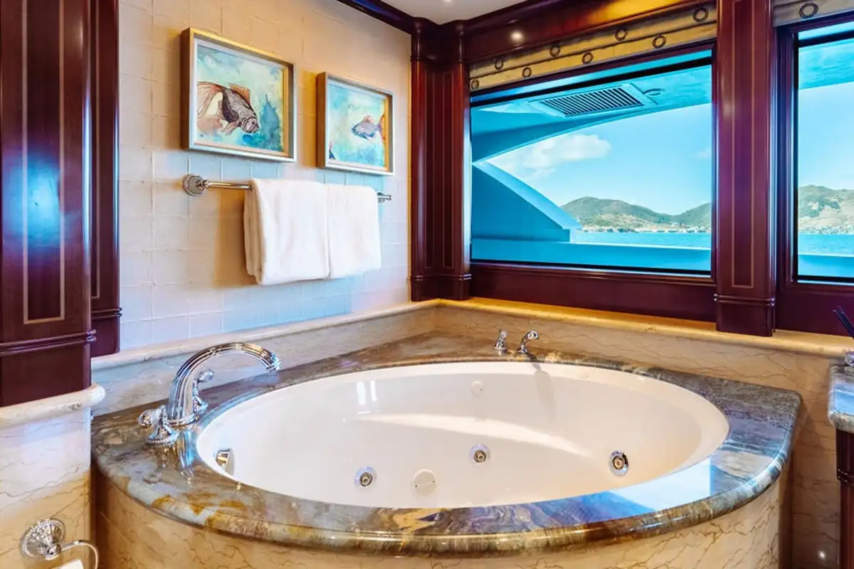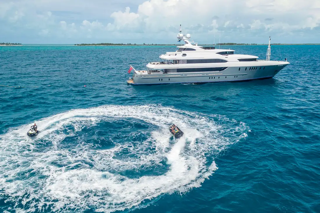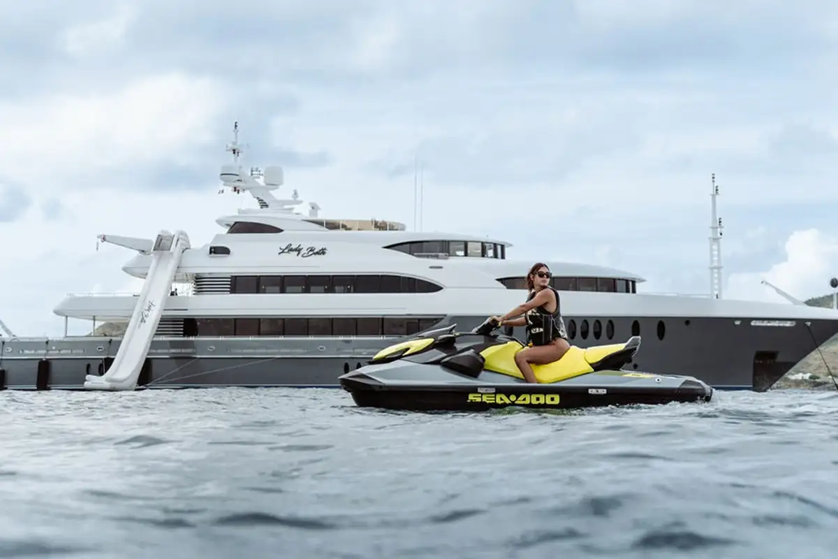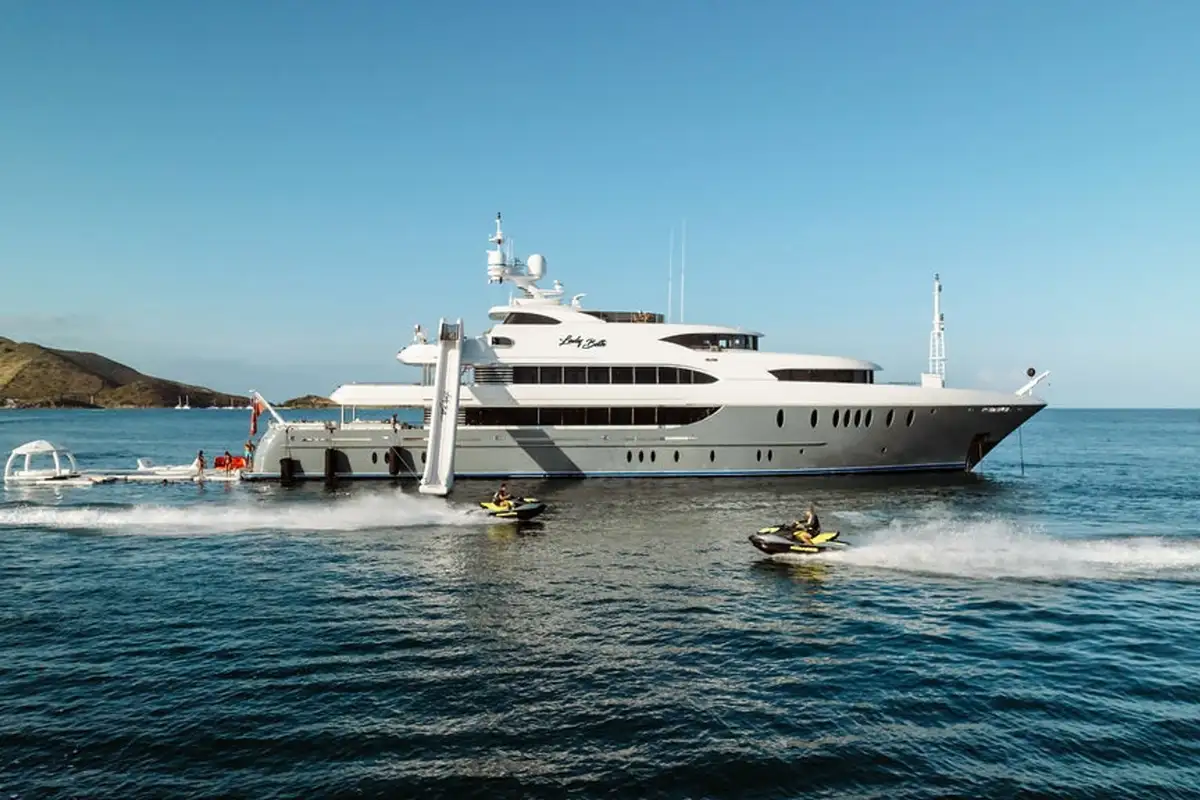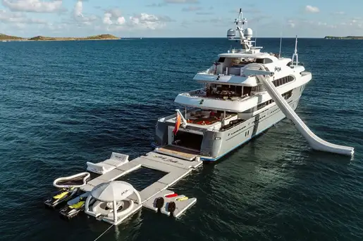 For water enthusiasts, LADY BETH is an aquatic paradise. Equipped with an impressive array of water toys, including waverunners, lift foils, SeaBobs, kitesurfing gear, and a thrilling 27’ inflatable slide, the yacht ensures an exhilarating experience for guests of all ages. For the more adventurous, dive into a vibrant underwater world with 12 complete sets of scuba pro gear available. Exploration is made effortless with a towed tender, while zero-speed stabilizers guarantee a smooth and comfortable journey, day or night.
