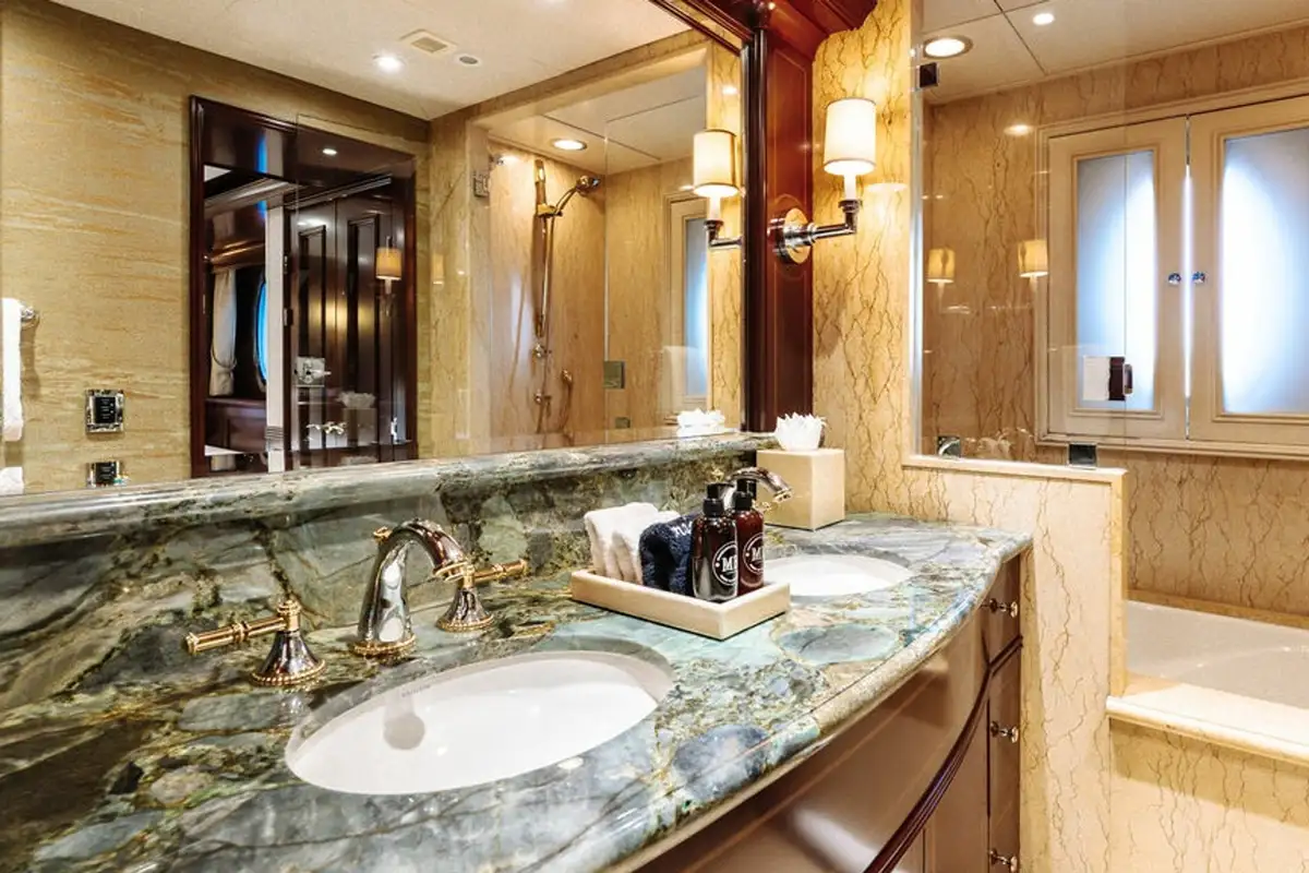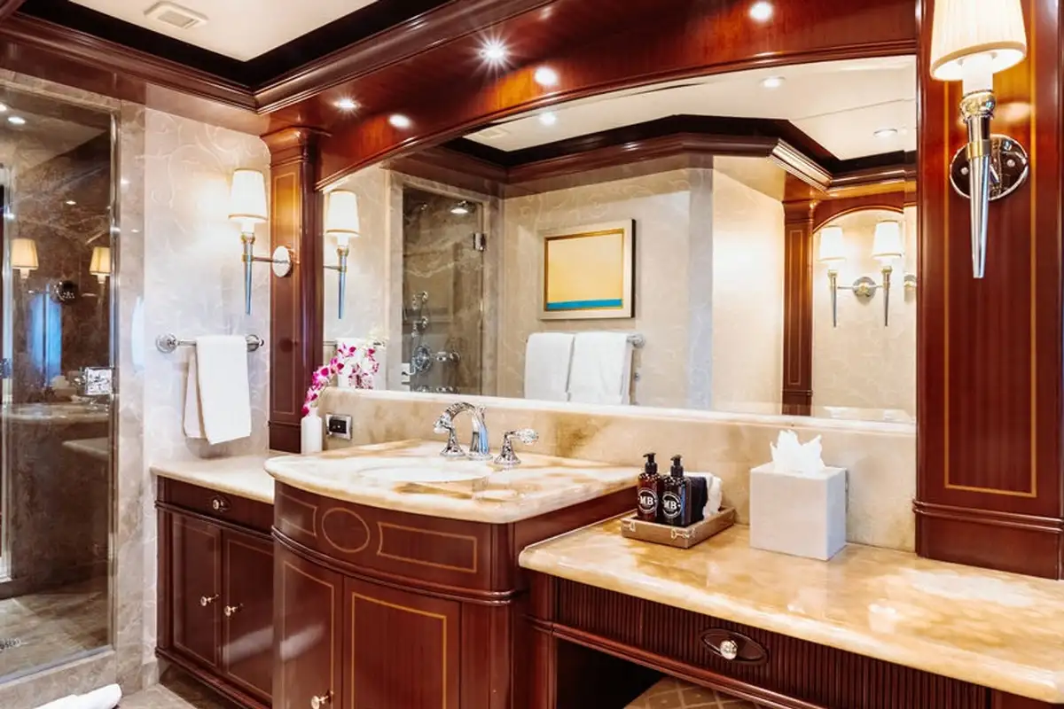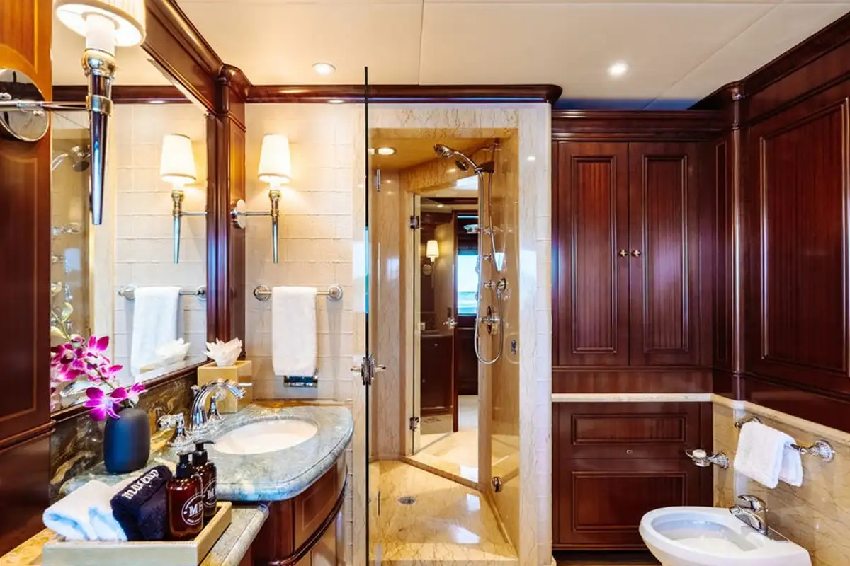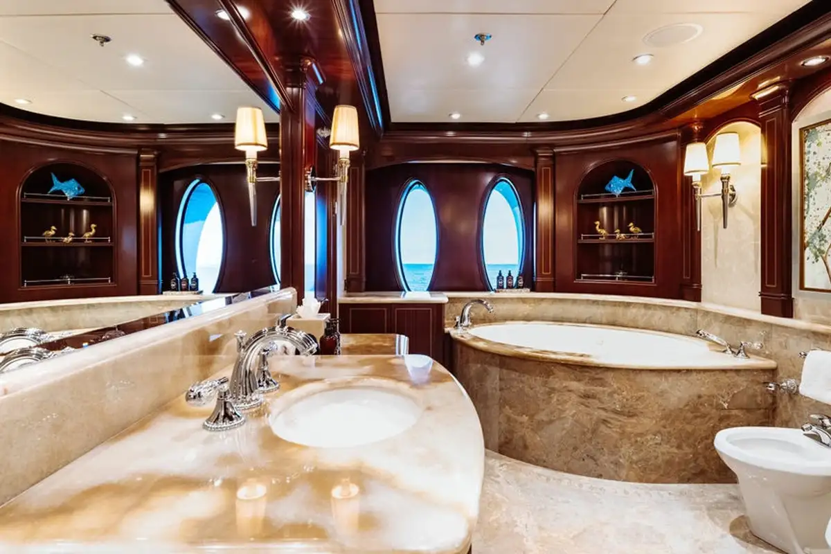For water enthusiasts, LADY BETH is an aquatic paradise. Equipped with an impressive array of water toys, including waverunners, lift foils, SeaBobs, kitesurfing gear, and a thrilling 27’ inflatable slide, the yacht ensures an exhilarating experience for guests of all ages. For the more adventurous, dive into a vibrant underwater world with 12 complete sets of scuba pro gear available. Exploration is made effortless with a towed tender, while zero-speed stabilizers guarantee a smooth and comfortable journey, day or night.
