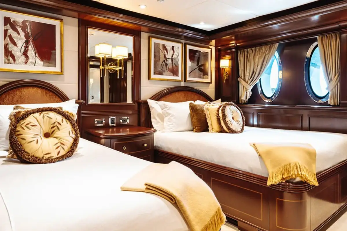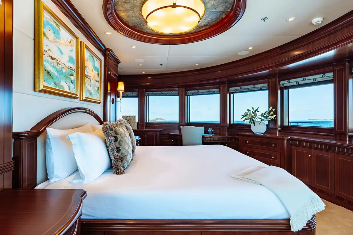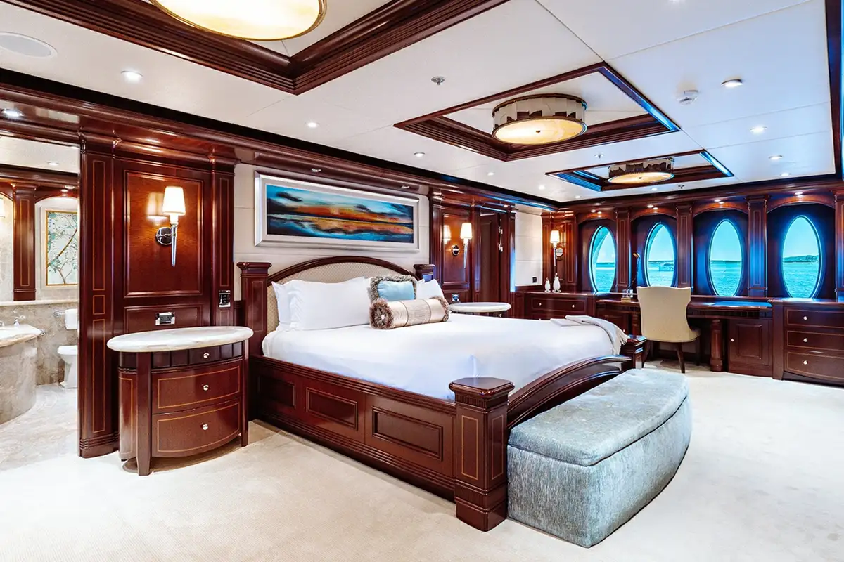 Welcoming up to 12 guests across six cabins, LADY BETH (previously named LOON) is the pinnacle of comfort and luxury at sea. Designed to cater to families and groups seeking the ultimate charter experience, she boasts not one but two master suites; one on the bridge deck that offers sweeping views to wake up to, and the other full-beam on the main deck adorned with striking oval windows.