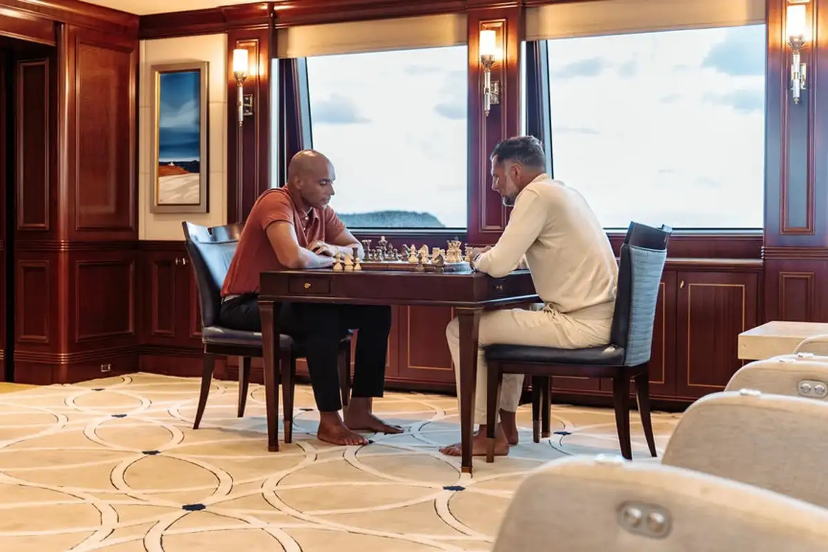 After a day packed with water activities, the expansive infinity-edge swimming pool/Jacuzzi aft provides the perfect setting for both relaxation and fitness. Guests can indulge in the dedicated spa for ultimate pampering or choose from an extensive movie library for evening entertainment. Plus, an elevator connecting all cabins to the bridge deck ensures accessibility to every amenity on board.