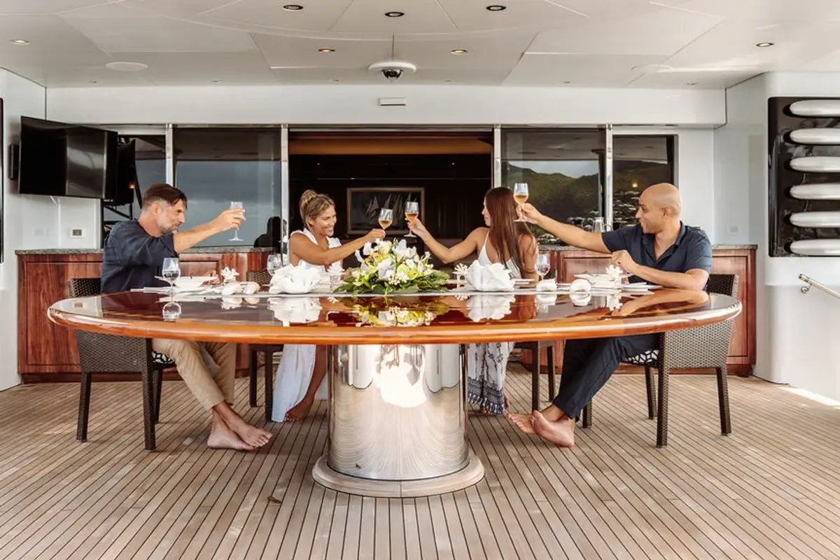 Immaculately maintained, LADY BETH offers lavish facilities for endless fun under the sun. The stunning beach club grants easy access to the water and a serene space for lounging. With her generous interior volumes, the yacht accommodates all 12 guests, offering versatile, well-appointed areas for private moments, complemented by extensive exterior deck space for unparalleled al fresco dining. Whether seeking thrilling adventures or tranquil escapes, LADY BETH is the perfect yacht for both, allowing family and friends to create lasting memories together.