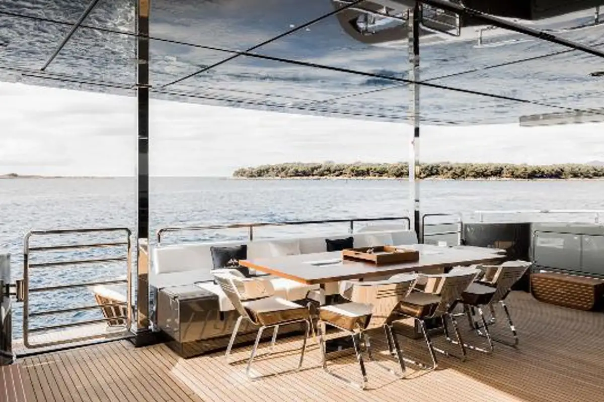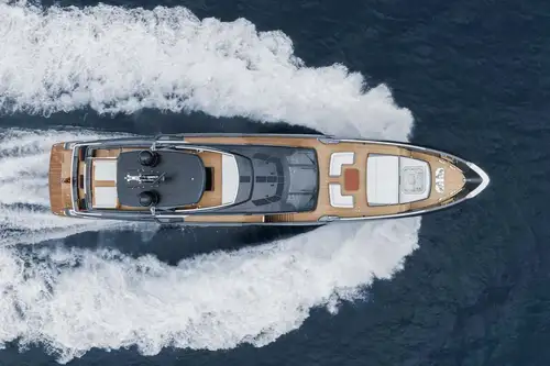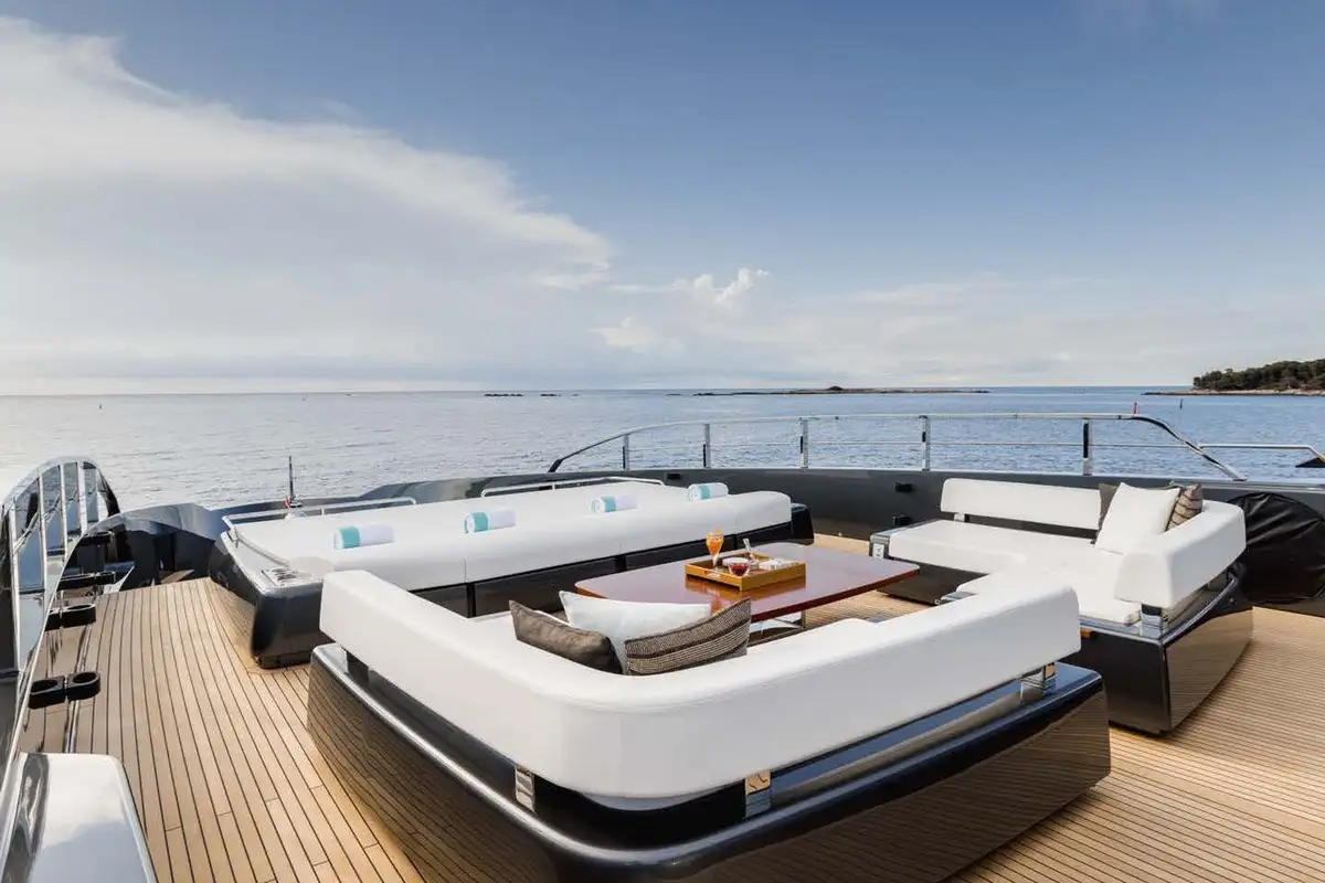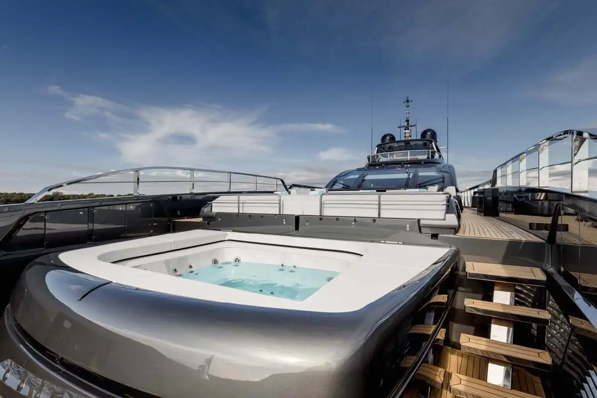 LADY FIRST is a striking 40-meter Riva that captures the essence of refined yachting. With beautifully balanced proportions and a smart layout, she offers seamless indoor and outdoor living, perfect for everything from quiet escapes to vibrant social gatherings. Expansive decks provide plenty of space to unwind, while her beach club gives direct access to the sea for spontaneous swims and watersports. A deck jacuzzi invites guests to relax in style, taking in panoramic views with a glass of something cold in hand.